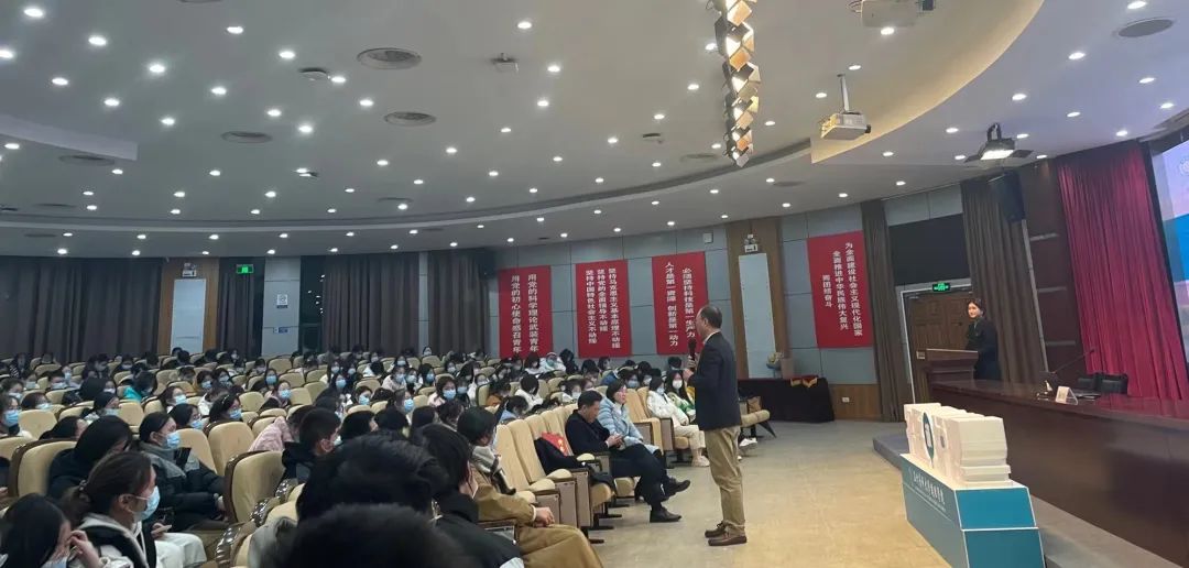 通过严玲微、吴翠松等老一辈护理人的优秀事迹为导入,向同学们展示了中心医院要提振护理高质量发展,首先准确识变、科学应变、主动求变是对新时代护理人的新要求,并以全面培养守护人民健康所需人力和人才为目标,提出了“顶天、强腰、接地”的人才培养规划:强化顶层设计,加强护理科研团队建设;深化专职专科发展,提升专科护理能力;规范护理员培训,提高整体素质。告诫同学们:准确识变、科学应变、主动求变是对新时代护理人才的新要求,护理工作的学术化、专业化和规范化是当下的大势所趋。并在最后用拓展是最好的发展、宽度决定高度、跨专业融合发展三句话凝练了护理工作模式的创新。