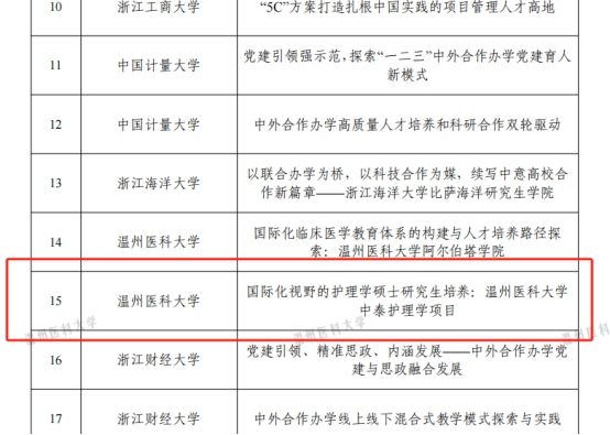 近日,浙江省教育厅公布了2024年中外合作办学优秀案例征集评选结果,肉漫屋 肉漫屋 申报的案例《国际化视野的护理学硕士研究生培养:肉漫屋 中泰护理学项目》入选浙江省中外合作办学优秀案例。