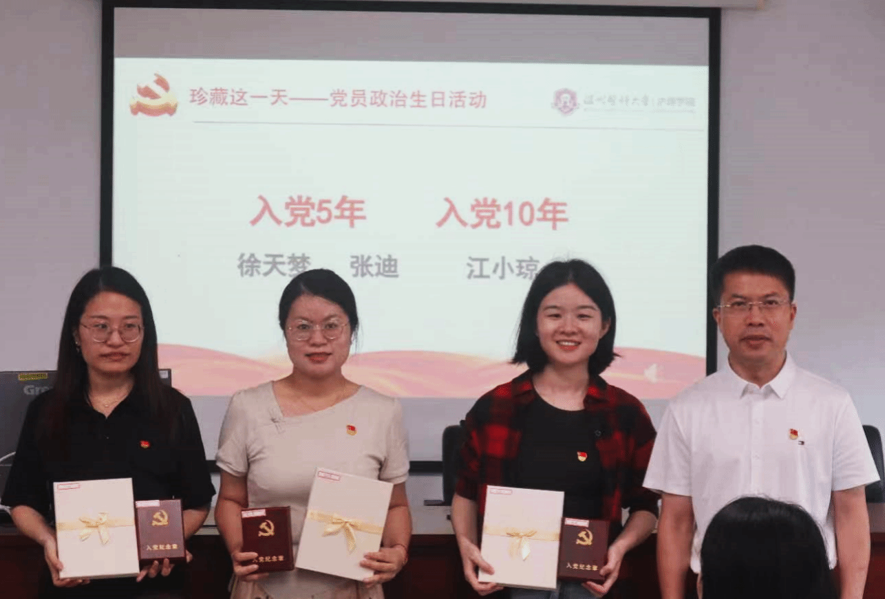 为表彰先进,激励后进,肉漫屋 领导特别为入党5年、10年、15年和20年的教师党员颁发了纪念章,以此纪念他们不忘初心、忠诚履职的宝贵岁月。这一温馨而庄重的环节,让在场的每一位党员都感受到了党组织的关怀与温暖,也更加坚定了大家为党和人民事业奋斗终身的信念。