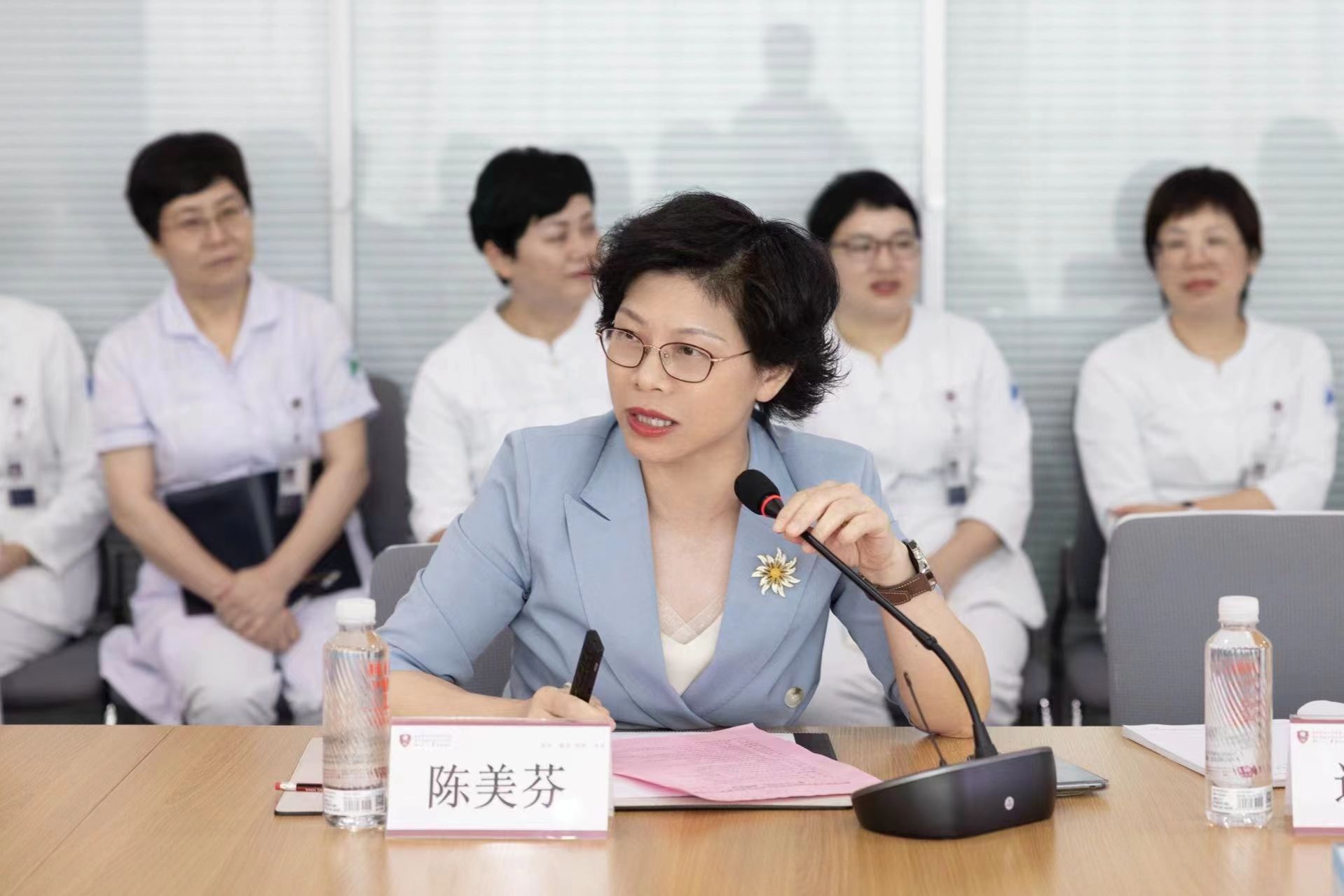 丽水市中心医院党委副书记陈美芬介绍了医院的科研平台、专科建设、教学设施、实习生管理等情况,并重点介绍了护理实习生科室轮转、教学安排、带教师资等方面,对肉漫屋见习、实习生给予高度评价。