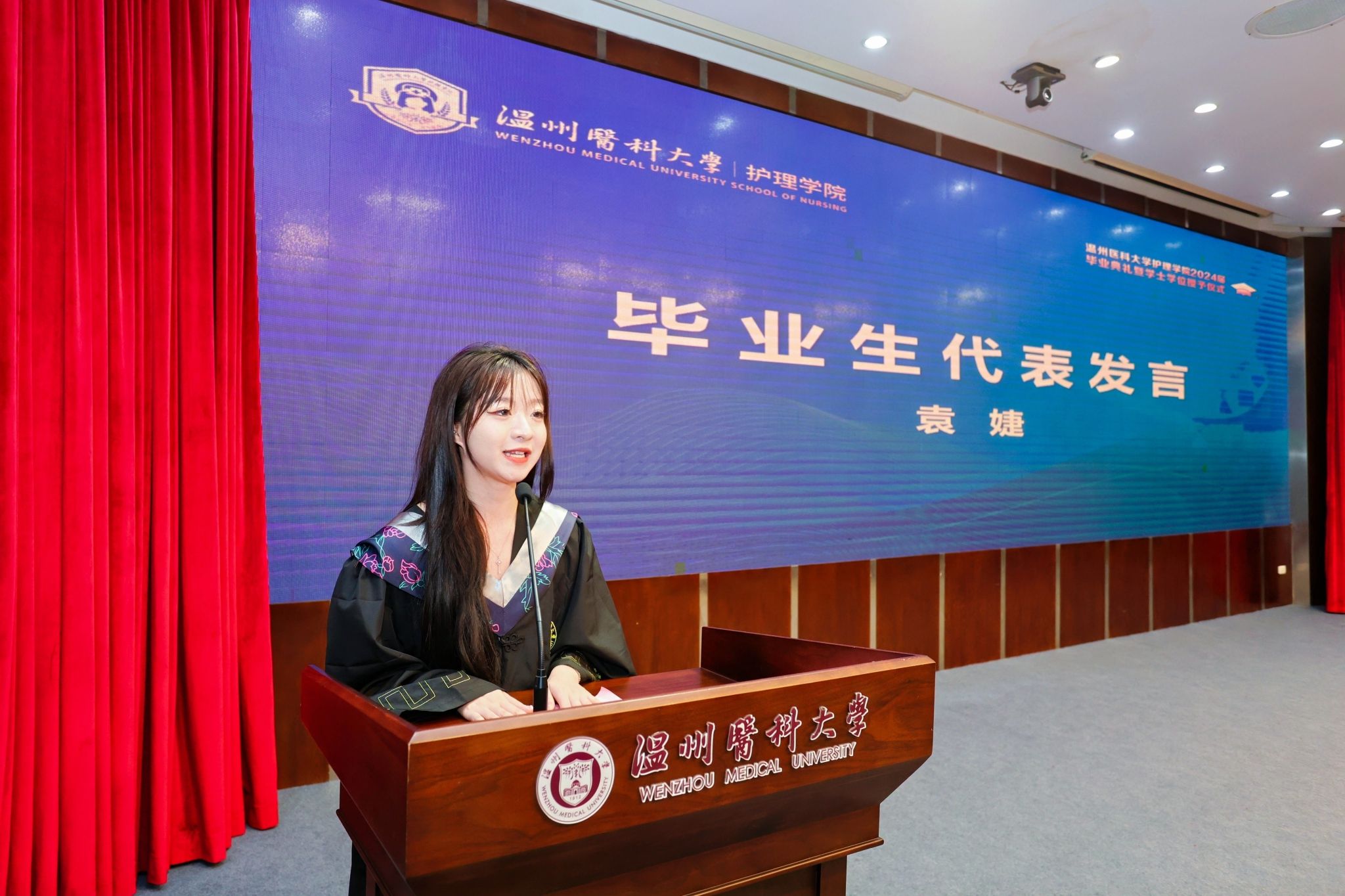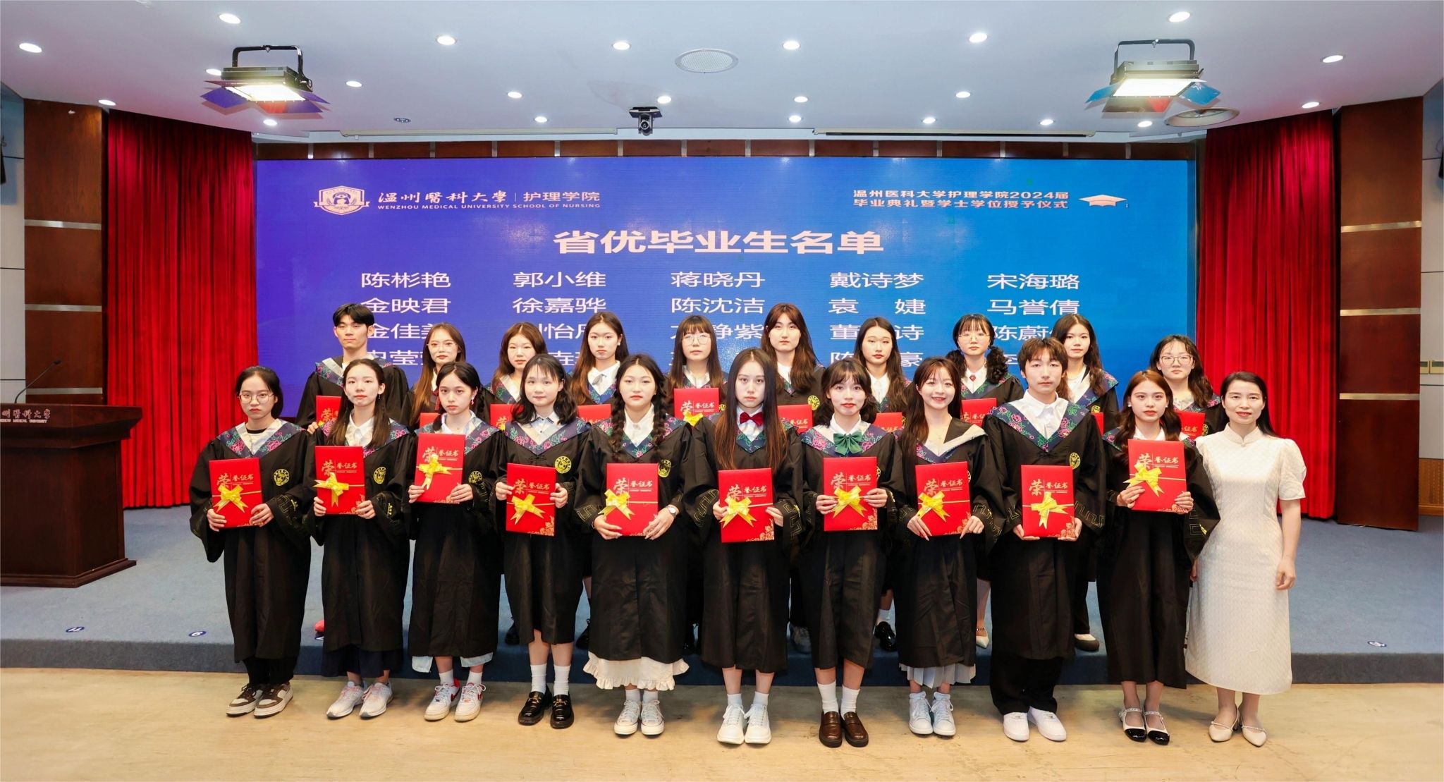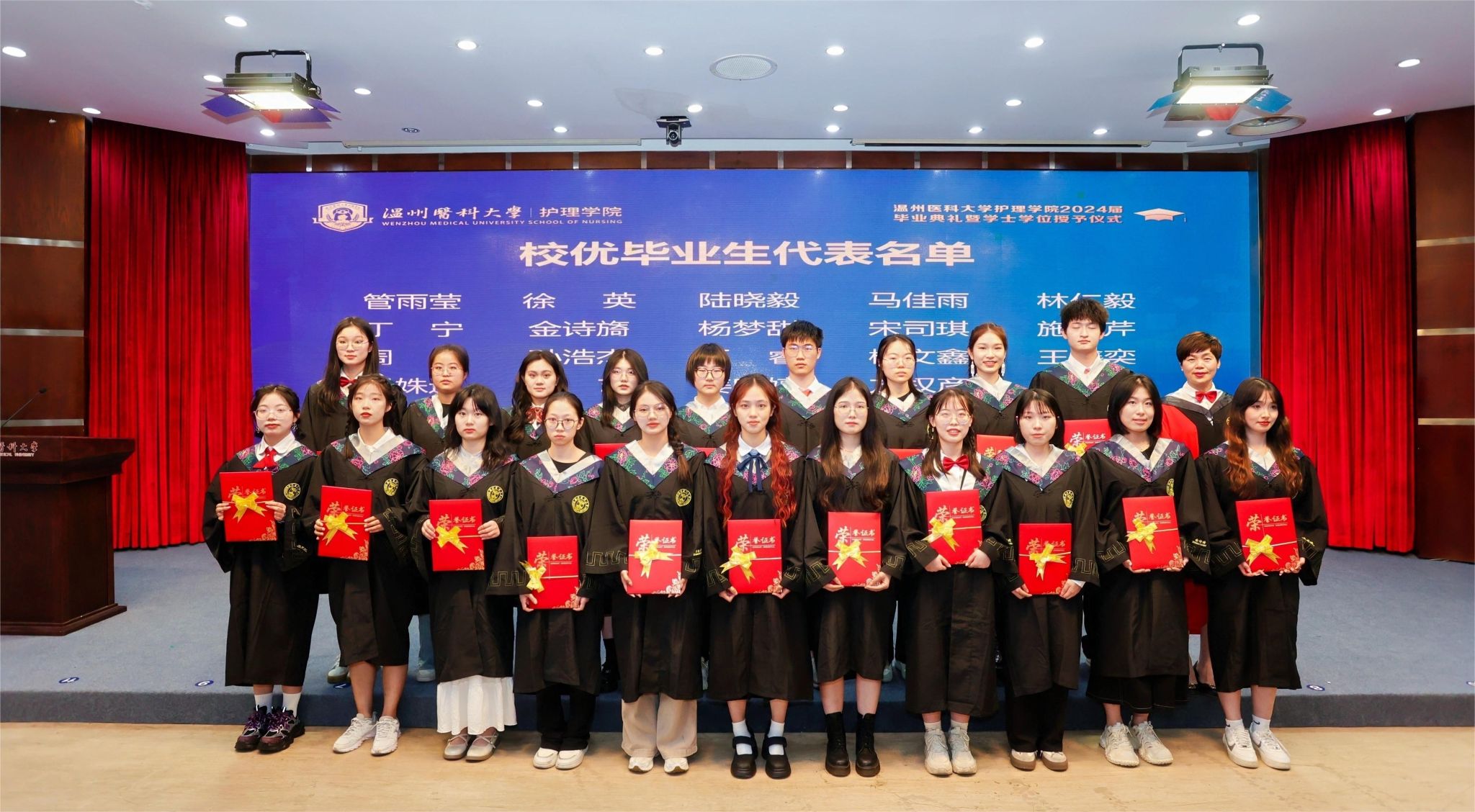 2024届本专科毕业生中有20位学子获浙江省优秀毕业生称号,85位学子获肉漫屋 优秀毕业生称号,35位同学成功考取研究生。其中20护本7班蒋泽凯同学成功考取浙江大学护理学专业研究生;20护本6班袁婕同学荣获校“十佳大学生”荣誉称号,同时她也在第十八届“挑战杯”全国大学生课外学术科技作品竞赛获一等奖;21护专金雨欣同学在全国大学生田径锦标赛女子铅球项目中取得第八名好成绩,刷新我校田径历史;20护本1班团支部成功入选浙江省高校“活力团支部”,多位毕业生在核心期刊及以上杂志发表论文或在各类创新创业大赛中获得佳绩。