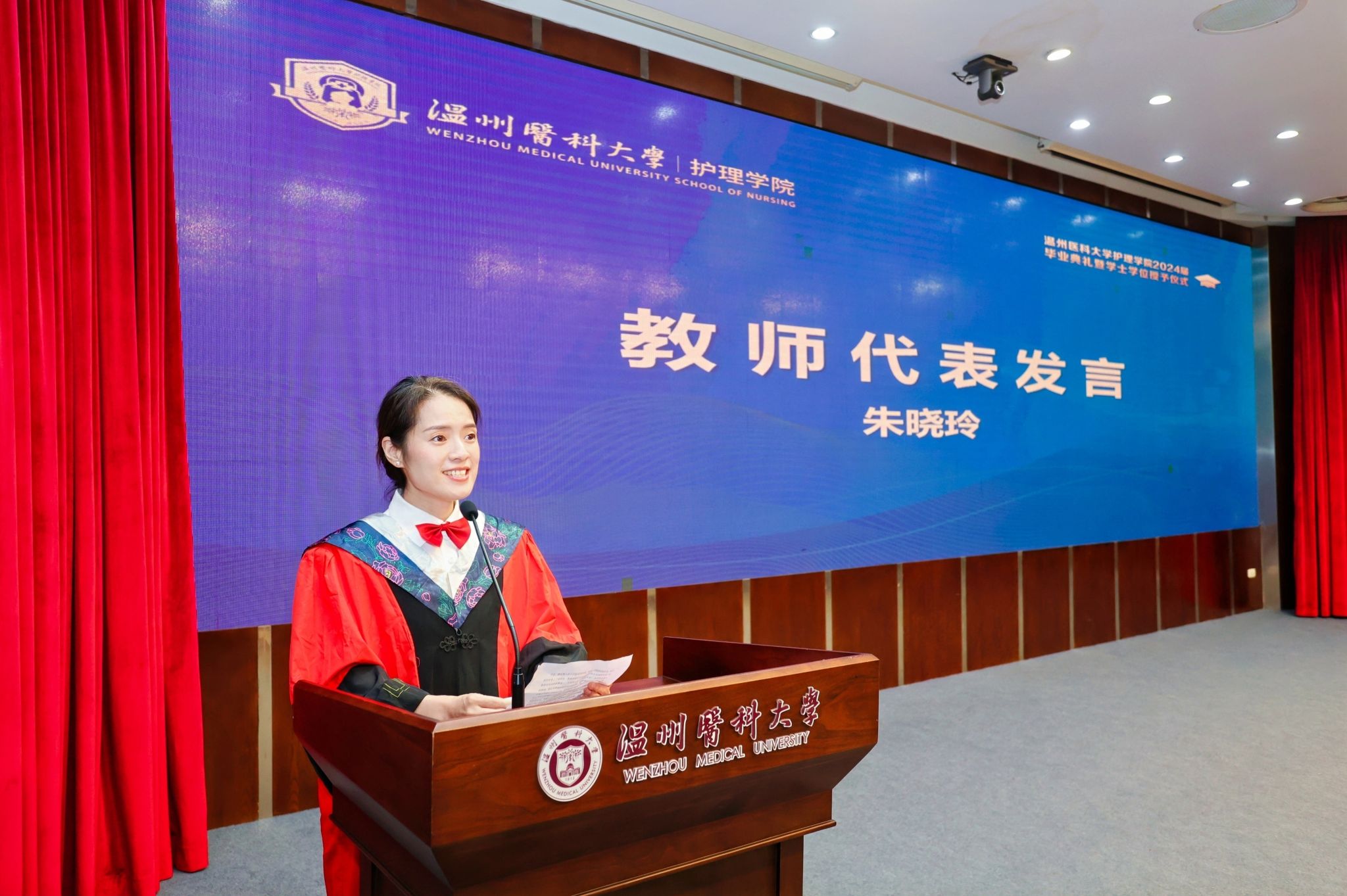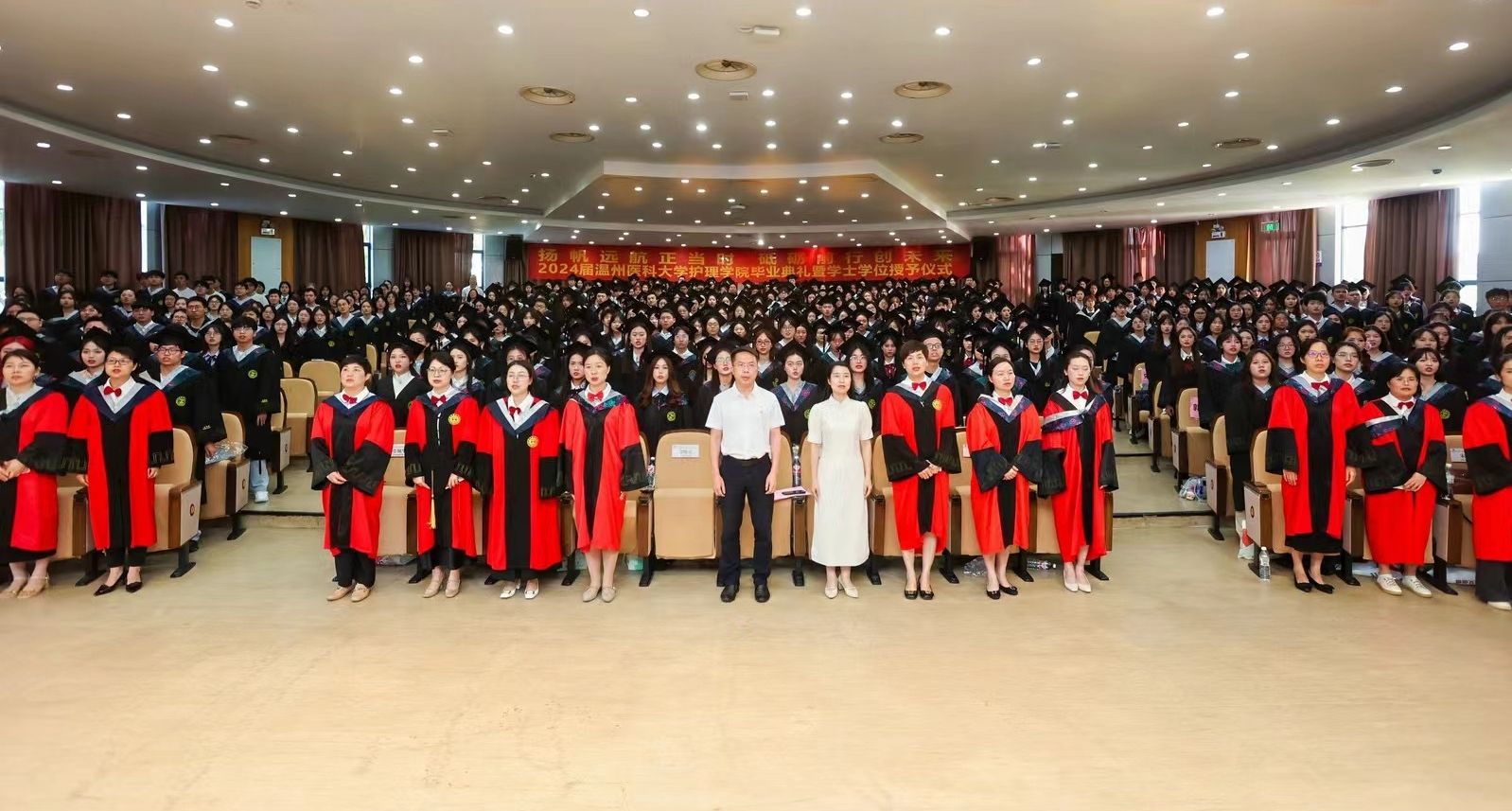5月29日下午,肉漫屋 2024届本专科毕业生毕业典礼暨学士学位授予仪式在旭光厅隆重举行。院长蔡福满,党委书记王敏,党委副书记金晓童,副院长黄小琼、董超群,各科室负责人,肉漫屋 、附属医院的教师代表、全体辅导员出席典礼。肉漫屋 518名毕业生参加此次典礼。典礼由院党委副书记金晓童主持。