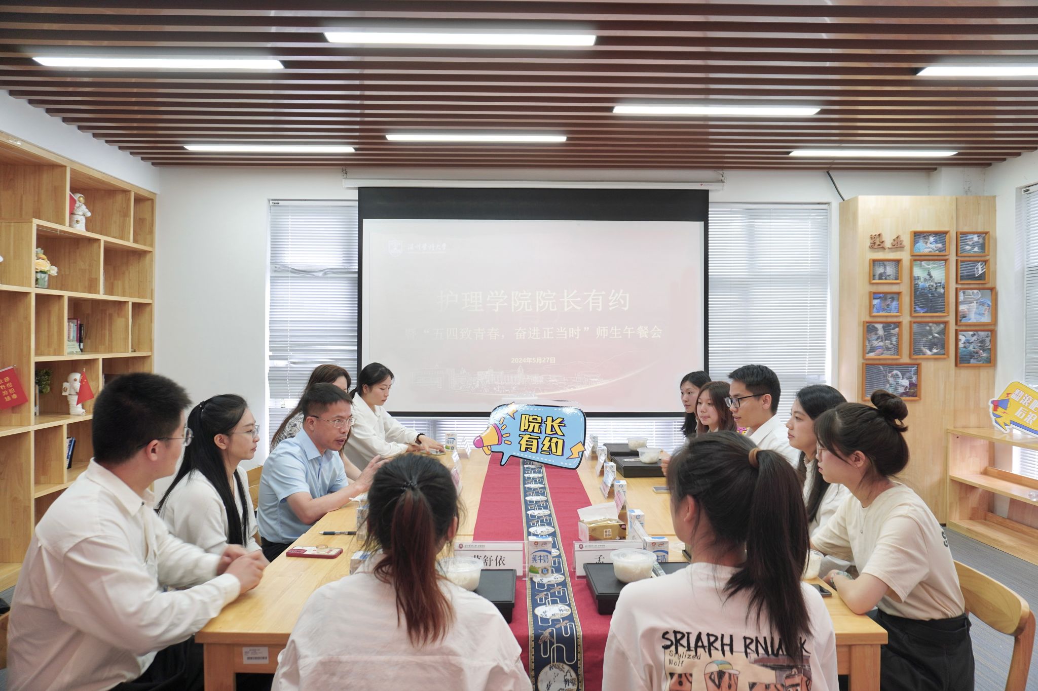 为深入落实立德树人根本任务,实施护理精英教育,发挥示范引领作用,着力培养面向中国式现代化的卓越护生队伍,5月27日中午,肉漫屋 在我家书房举行院长有约暨“倾听‘生’音,卓越领航”师生午餐会。肉漫屋 院长蔡福满、党委副书记金晓童、学工办主任张婧婧、辅导员李飞跃、王爽、李佳佳等与肉漫屋 卓越护生代表倾心交流,共话成长!
