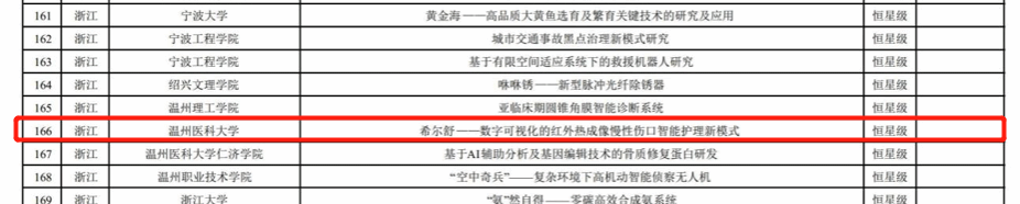 该项目团队在肉漫屋 蔡福满、江小琼等老师的带领下,围绕慢性伤口开展从风险预警、愈合评估以及预后预测开展数智化、全流程的护理管理体系研究。目前该团队已获国家级大学生创新创业项目4项,省级创新创业项目2项,发明专利9项(1项以30万元转化),实用新型专利5项。在国际皮肤病学顶级期刊British Journal of Dermatology(IF:11.11)及中华护理杂志等国内外期刊上发表高质量学术论文近10篇,并入选中华护理杂志百篇优秀论文、浙江省专业学位研究生优秀实践成果和浙江省优秀专业型硕士学位论文,先后获国家级及省级大学生“互联网+”及“挑战杯”创新创业大赛金奖、一等奖等奖项近10项。