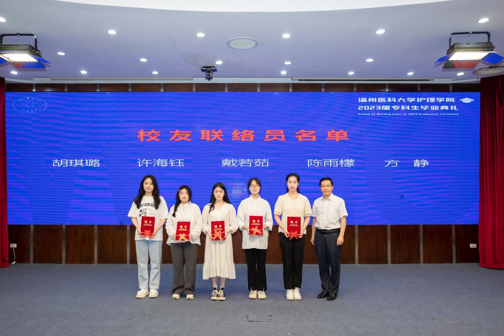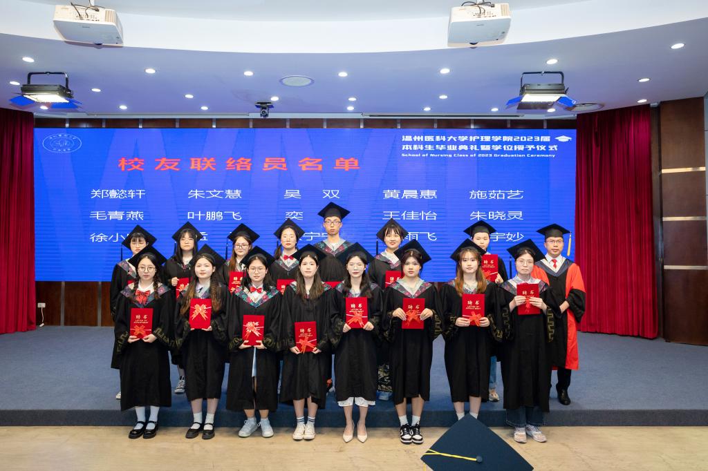 2023届毕业生有23位学子获浙江省优秀毕业生称号,99位学子获肉漫屋 优秀毕业生称号,多位同学在核心期刊发表论文并参与各类国家级、省级创新创业大赛获得佳绩。为激励毕业生砥砺奋进、笃行致远,李旭东书记为省优毕业生代表颁发证书、为卓越护生颁发结业证书,蔡福满院长为校优毕业生代表和校友联络员颁发证书。“收到这份证书之后我很激动,内心充满了自豪感,今后定不负众望,勇毅前行。”省优毕业生代表奕婷如是说。