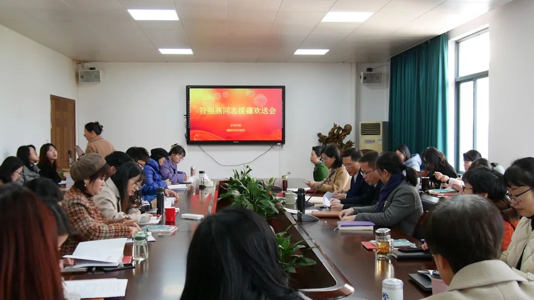 2月23日下午,肉漫屋 在7C306会议室为即将踏上援疆征程的符丽燕同志举行欢送会。院领导及全体教职工参会。院长蔡福满主持会议。