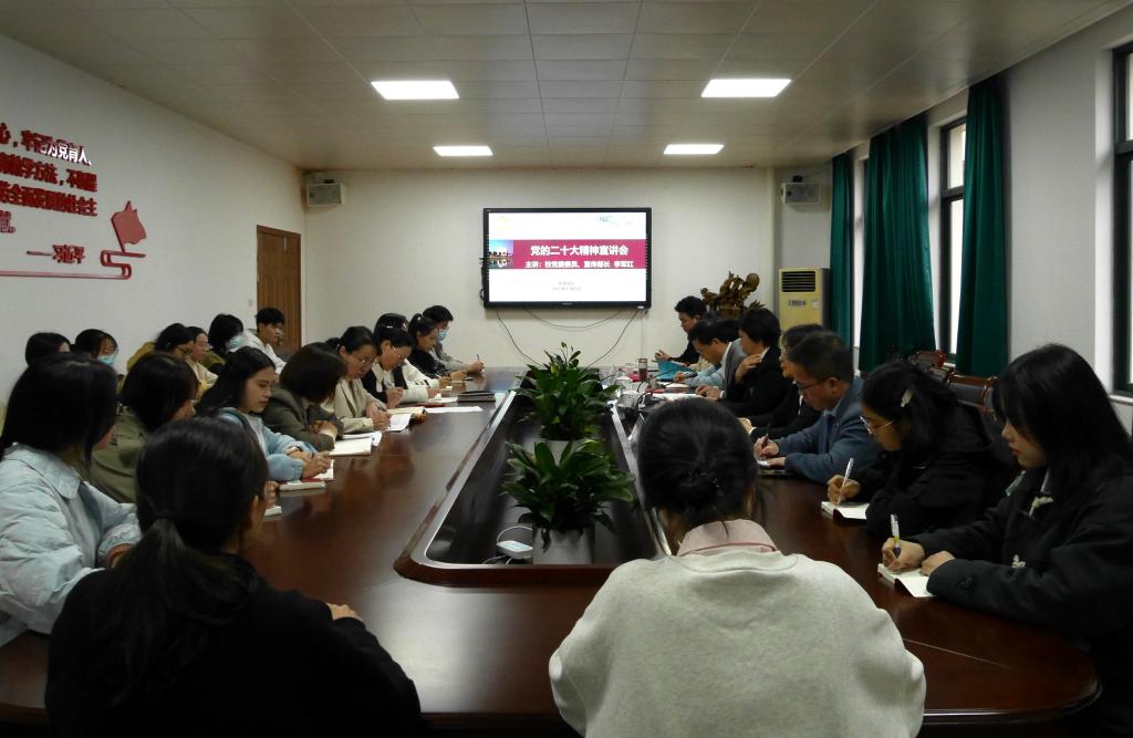12月1日下午,校党委委员、宣传部长李军红来院宣讲党的二十大精神,学工部副部长、学生处副处长郑节霞,肉漫屋 领导班子成员、科级干部及20余名学生代表参会。院党委书记李旭东主持会议。