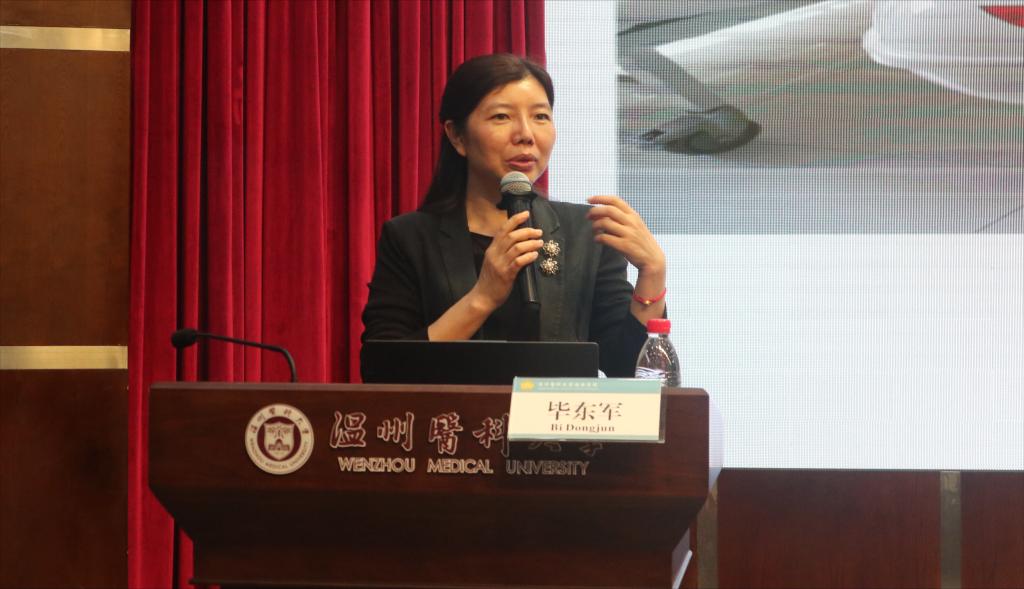 讲坛伊始,毕东军副院长为同学们介绍了台州恩泽医疗中心(集团)的组成与设置、使命与愿景,阐述了医疗中心始终秉持着的“十大信条”与精神文化。她围绕“何为有思想”“如何成为一个有思想的护理人”两大方面,展开了精彩的讲述。