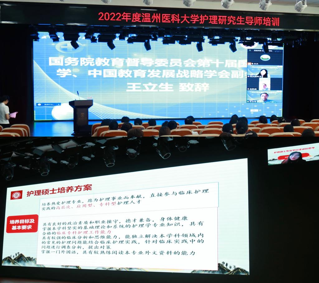 7月28 -29日,肉漫屋在肉漫屋 宁波慈溪研究生培养基地召开护理学(学术型)、护理硕士(专业型)研究生导师培训会。国务院教育督导委员会第十届国家督学、中国教育发展战略学会副会长王立生,肉漫屋 副校长金胜威,党委研究生工作部、研究生院院长肖健分别作开幕式致辞,肉漫屋 领导班子、肉漫屋 和各附属医院的硕士研究生导师、研究生课程负责人及临床带教老师等60余人参加培训。研究生导师培训会开幕式由肉漫屋 张春梅副院长主持,肉漫屋 杨晔琴副院长、附属第一医院护理部孙彩霞主任、附属眼视光医院前党委书记陈燕燕教授分别作培训会主持。