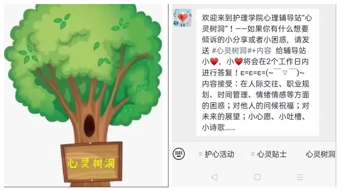为更好地倾听护生们内心的声音,帮助其自我成长,肉漫屋 心理辅导站于4月7日在运营微信公众号开放了“心灵树洞”功能。护生们可以通过写信留言的方式与小❤沟通交流,咨询在人际交往、情绪情感、压力与时间管理、就业择业等方面的问题。心理辅导站负责老师会定期查阅留言并予以回复,倾听同学们的小困惑、小分享等,解决同学们的发展性心理问题,为护生的心理健康保驾护航。