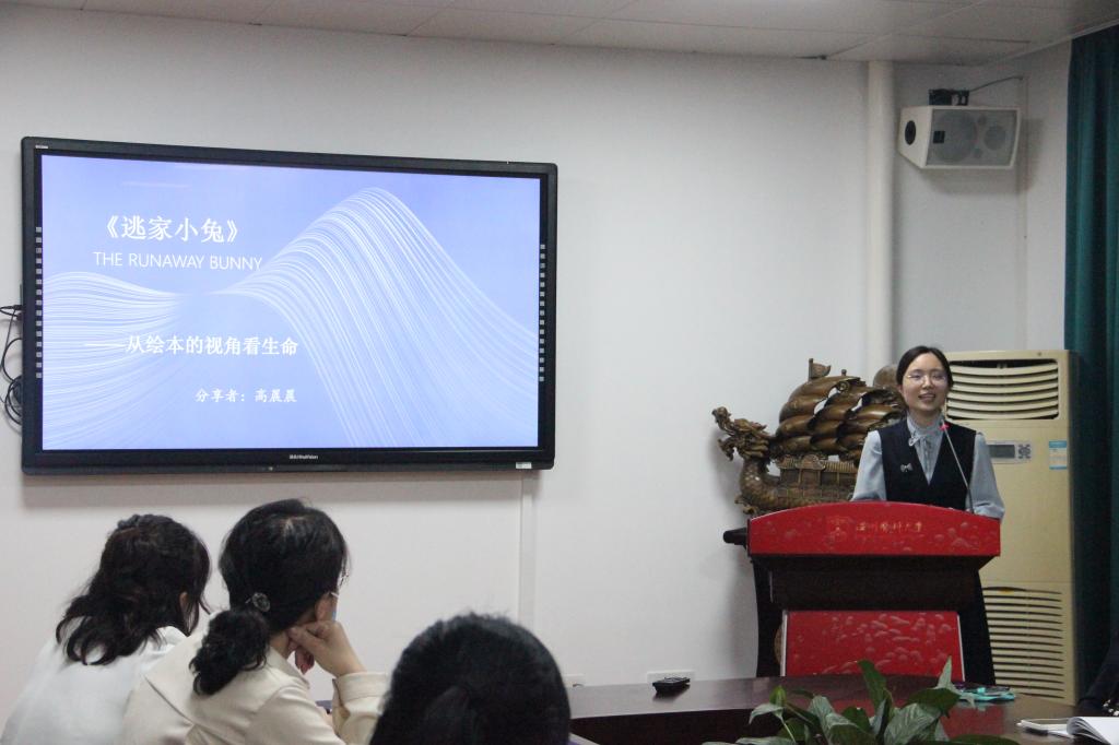 高晨晨老师从绘本的视角看生命,分享了儿童绘本《逃家小兔》中蕴藏的生命智慧。本书传统的“母爱主题”视角是认为生命中我们追逐的东西是暂时的,但生命中母亲的爱确是永恒的。高晨晨结合护理临终关怀学进行升华,提出生命以不同的方式呈现,生和死可能转瞬就发生,但心中有爱者少有畏惧生命的观点,令人印象深刻。