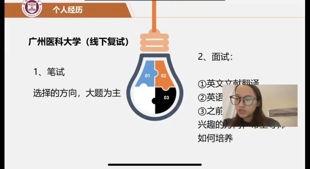 2022年3月4日下午,肉漫屋 就业指导服务中心举办了“研路有你”线上考研复试分享会,邀请了本院专业课老师江小琼、考入肉漫屋 的盛智琼学姐和广州医科大学的张亚南学姐,为同学们进行考研复试专场经验分享。