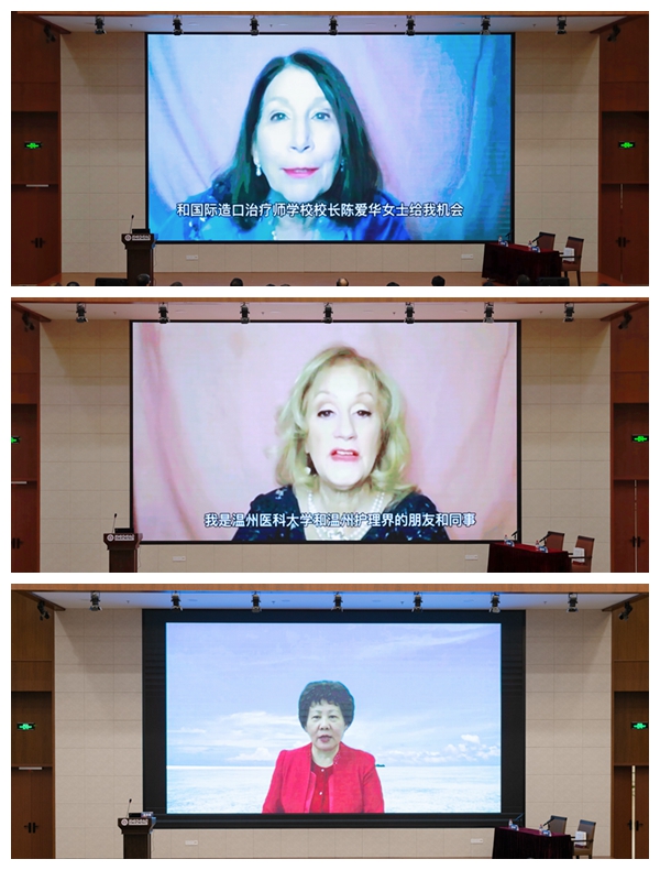 校长、中国工程院院士李校堃,中国工程院院士樊代明、付小兵,美国护理科肉漫屋 院士伊丽莎白·阿耶洛、凯蒂·卡皮图洛,中华护理学会理事长吴欣娟通过视频致贺词。