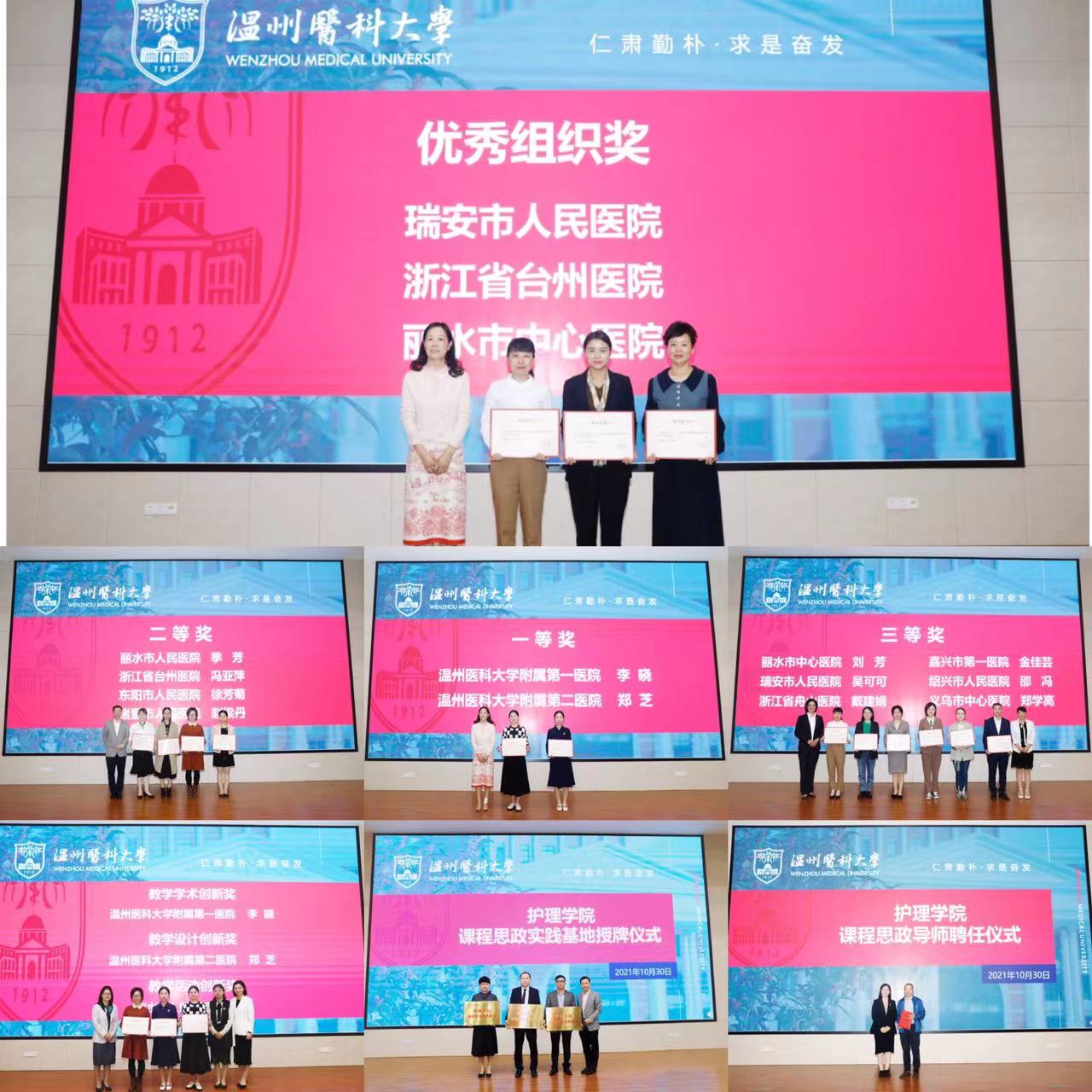 会议表彰了校第一届护理青年教师教学创新比赛获奖选手和单位,聘请李健老师为肉漫屋 课程思政导师,并授牌颐乐如养老院、红景天养老院及温州市中心医院安宁疗护病房为肉漫屋 课程思政教学基地。