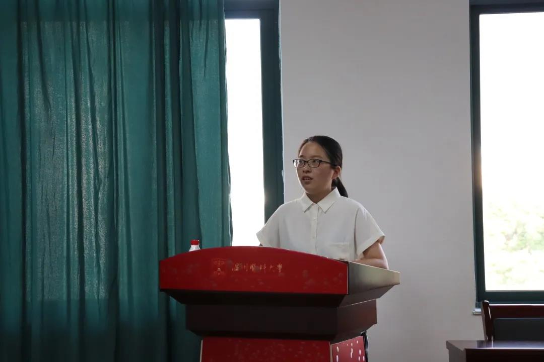 随后,开展党史学习教育。巩铭烨和邵存辉两位同学进行了微党课展示。他们结合社会实践所看所想所感所悟,将郑九万的“老百姓在干部心中的分量有多重,干部在老百姓心中的分量就有多重”的精神融入党课,将“请党放心,强国有我”的决心融入党课。
