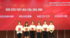 专科毕业生代表雷思思同学,代表全体毕业生向母校致以崇高的敬意,对老师的辛勤培养表示诚挚的感谢,并与在座的同学们分享大学三年的学习时光赋予她的三个锦囊,即勇气、智慧、以及真诚与爱,最后希望同学们不负时代赋予护生的神圣使命。