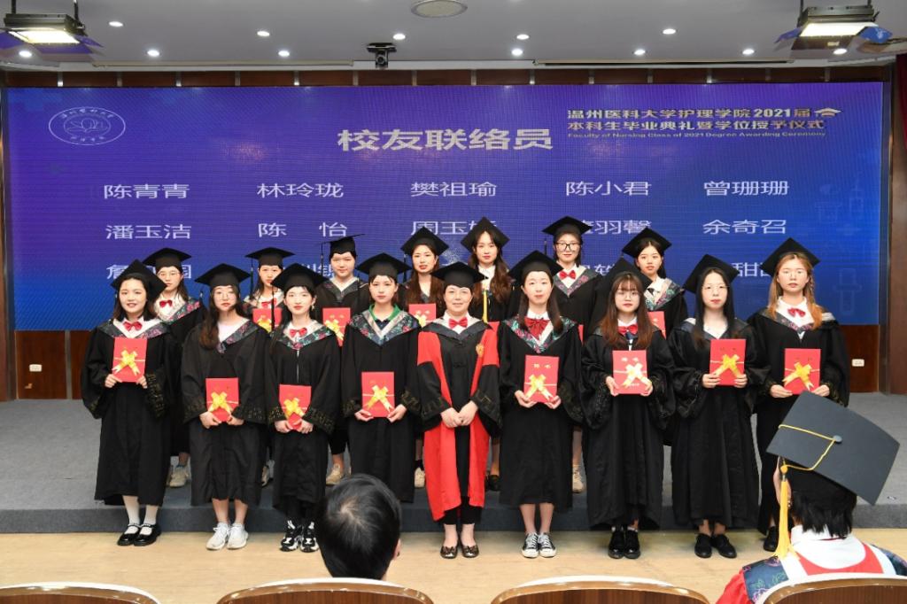 2021届毕业生有17位学子获浙江省优秀毕业生称号,26位学子成功考取研究生,更有学生在各类创新创业大赛、全国网球比赛等各种赛事中屡获佳绩。为激励毕业生砥砺奋进、笃行致远,李旭东书记为省优毕业生代表颁发证书,张春梅副院长为获得卓越护生考研奖的同学颁发奖励证书。“收到这份证书之后我很激动,内心充满了自豪感,今后定不负众望,砥砺前行。”省优毕业生代表来初阳如是说。活动现场,肉漫屋 还聘任了20位同学为校友联络员,杨晔琴副院长为校友联络员颁发聘书。