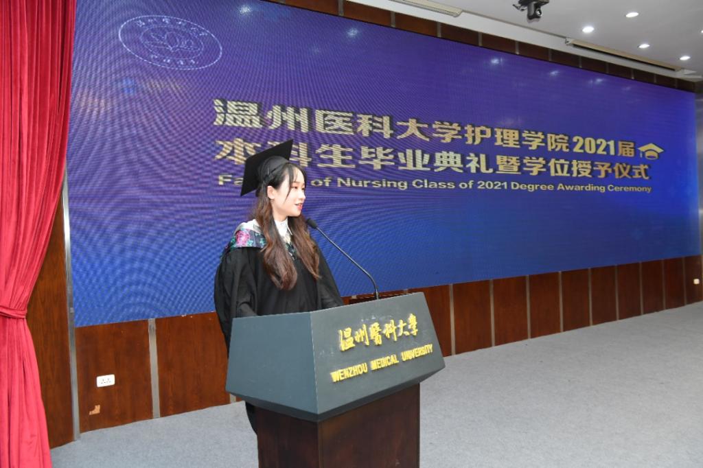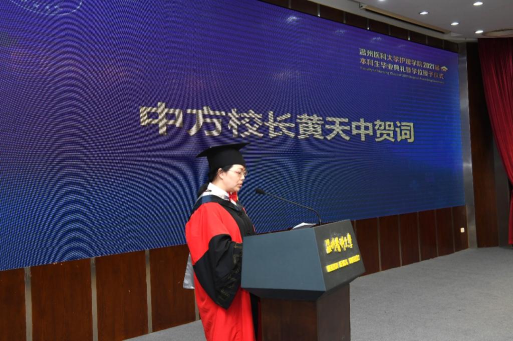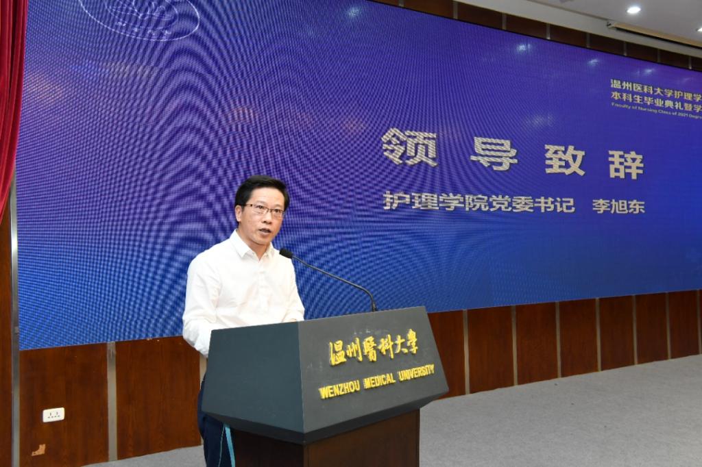 典礼在庄严的国歌声中拉开帷幕。肉漫屋 党委李旭东书记致辞。他代表肉漫屋 祝贺毕业生们圆满完成学业,向为学子成长成才倾注大量心血的师长和家长表示感谢。他高度肯定全体毕业生在过去四年付出的努力和取得的成绩。他向全体毕业生提出三点希望:一是希望同学们坚定理想信念。勉励同学们要认真学习党史,从中激发信仰、获得启发、汲取力量,树立为祖国为人民永久奋斗、赤诚奉献的坚定理想。二是希望同学们传承大爱精神。勉励同学们要承续抗疫中护理人大力彰显的家国情怀和职业精神,勇敢承担起救死扶伤的神圣职业使命。三是希望同学们追求自我卓越。勉励同学们要让优秀成为一种习惯,注重精神成长,强化精英意识,培养批判思维,加快迭代升级,努力做一名知性又优雅,自信有活力的新时代卓越护理人。