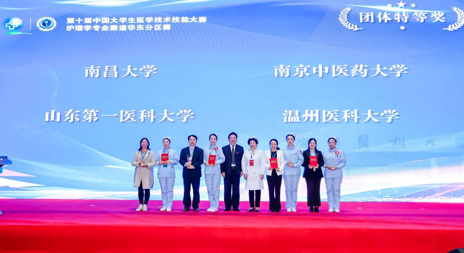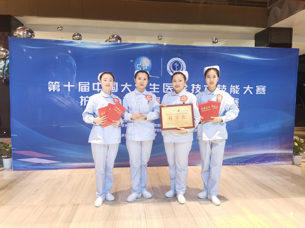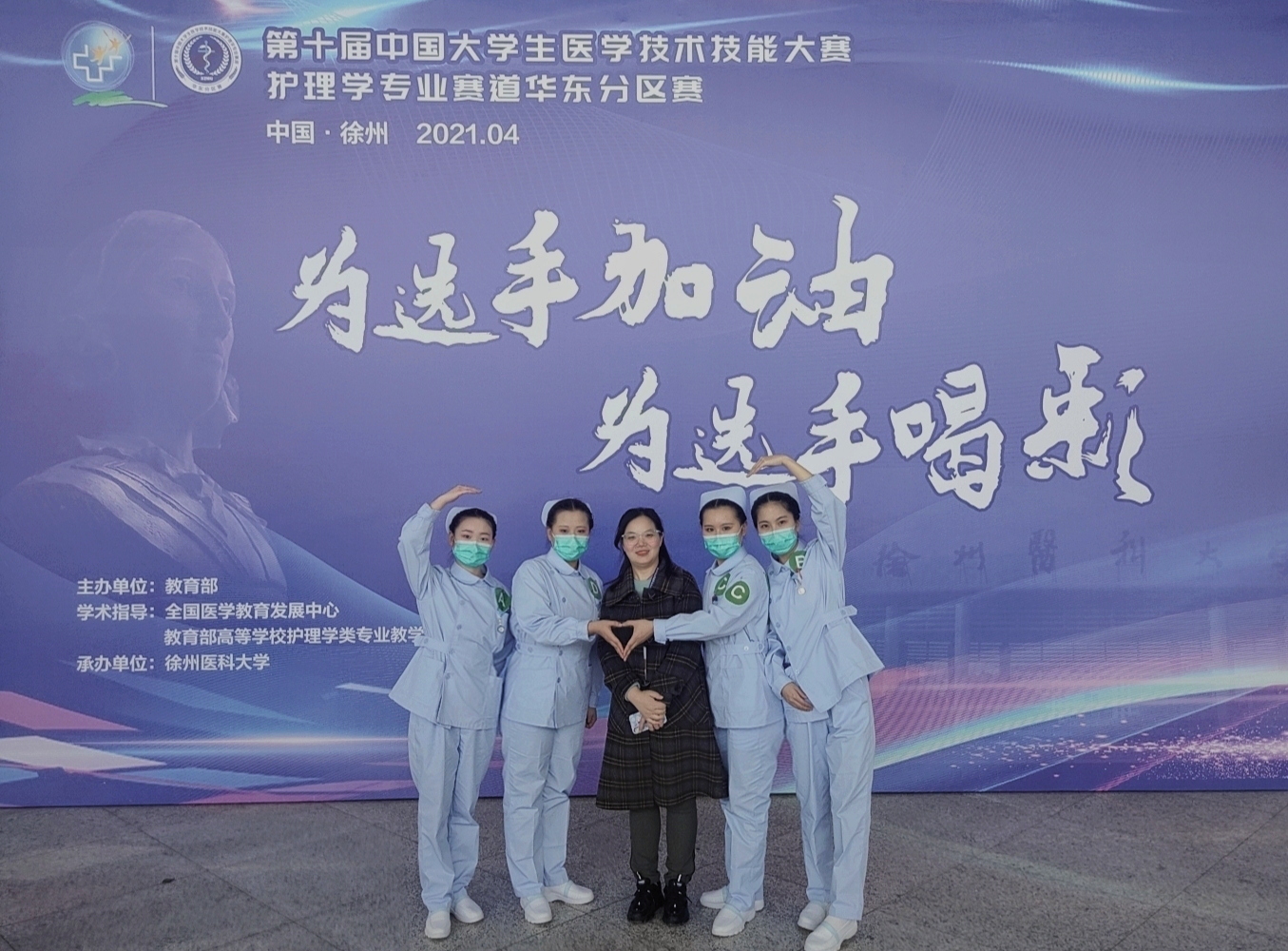 4月17-18日,由教育部主办、教育部高等学校护理学类专业教学指导委员会学术指导的第十届中国大学生医学技术技能大赛护理学专业赛道华东分区赛在徐州医科大学举办,共有6省1市62所护理本科院校参赛。肉漫屋张馨尹、潘艳艳、陈俊回、陈蕾蕾4名护生组成的代表队勇闯三关,夺得华东赛区特等奖,取得全国赛入场券,陈俊回和潘艳艳获得个人单项奖。