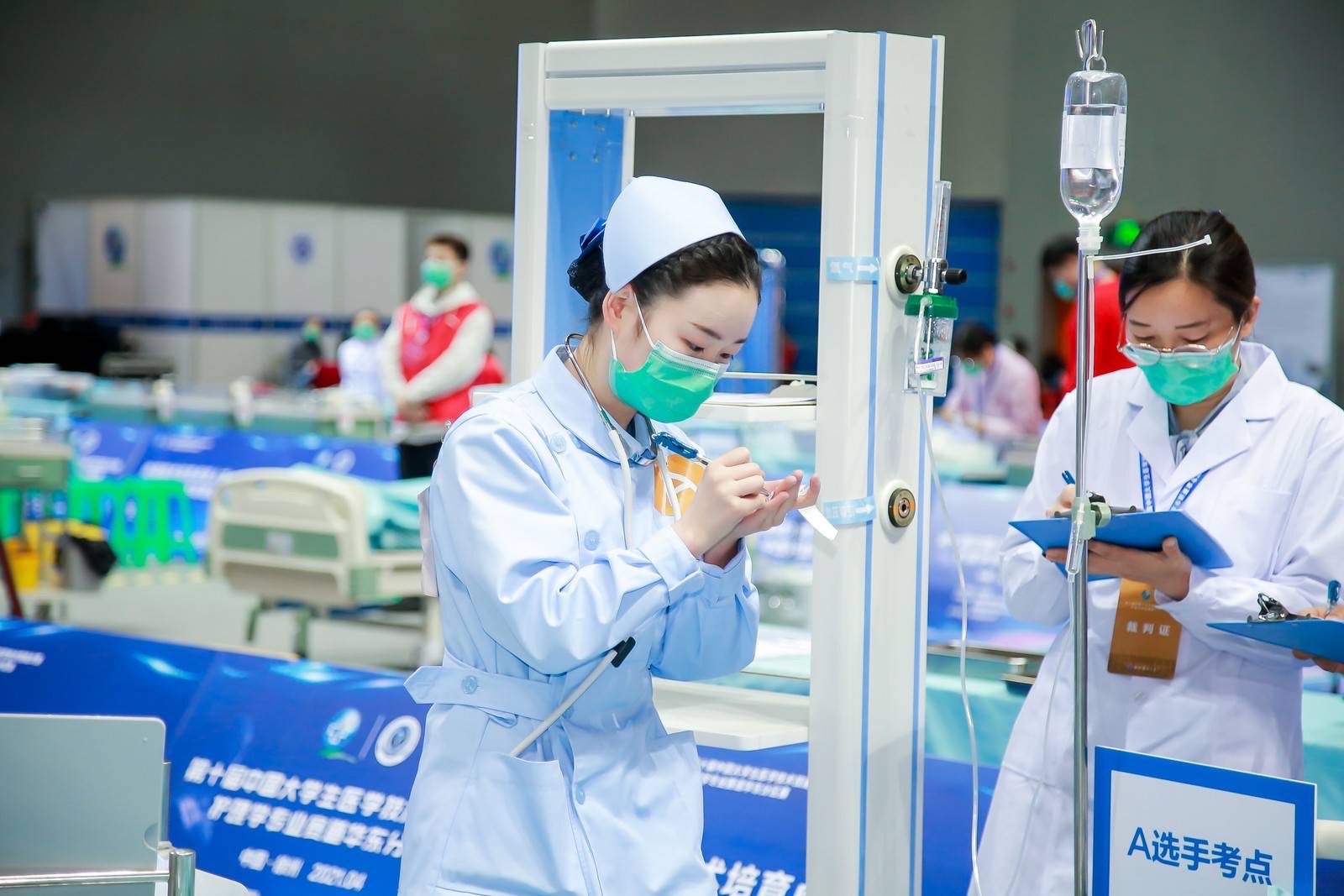 据了解,中国大学生医学技术技能大赛是我国医学教育界的高端赛事,自2010年以来,已连续举办十届。大赛今年首次增设护理类专业赛道,初赛为多站式,考核范围涵盖基础护理学、急危重症护理学、内科护理学、外科护理学、妇产科护理学、儿科护理学、健康评估、老年护理学、社区护理学等。通过初赛的32支队伍晋级复赛,复赛采用“赛道式”考核,以临床案例和场景为轴,重点考察学生解决复杂问题的能力和临床思维能力,通过复赛的12支队伍最终晋级决赛。