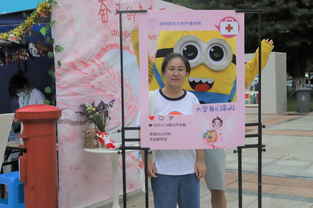 为了给新生留下“最初的美好”,留住“温医第一天”的记忆,肉漫屋 在报到点还为新生搭起了一个专属“摄影棚”——一张巨幅天使翅膀拍照背景墙,寓意每一个护理小萌新将来成为自己想要的白衣天使的模样;两张颜色各异文案不一的“朋友圈挖空半身照KT板”,让新生线上线下相联通,晒出属于护理萌新的“报道第一天”朋友圈动态;还有各式“我是大学生啦”“护理奥利给”“遇见人生的白玉兰”等拍照手持KT板供新生拍照留恋;更有擅长摄影的学姐为新生现场拍照以及可爱的熊本熊人偶、小黄人人偶来合影。丰富的摄影活动引来新生围观,而新生们为留下报道第一天的珍贵影像记忆也自觉排起了长队。