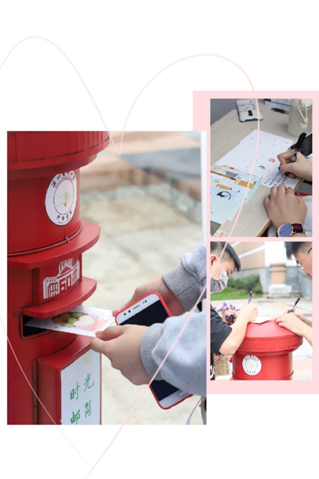就在肉漫屋 迎新帐篷的边上,静静立着一个复古款式的红色邮筒和一张摆放着精美明信片的白色圆桌。这是肉漫屋 为新生准备的“梦想时光机活动”,新生可以在白色圆桌上写下对未来的期许,送给四年后的自己,而肉漫屋 会将新生投递到邮筒的明信片密封保存,等到将来新生毕业再赠与学生。梦想时光机的活动引来许多新生驻足停留并写下了自己的期待与梦想,不到半天的时间邮筒里已经塞满了来自新生的时光信笺。