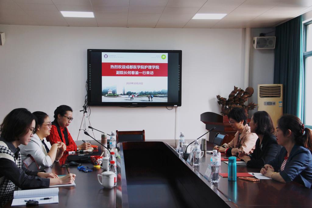 10月20日上午,成都医肉漫屋 肉漫屋 副院长何春渝一行来院访问,肉漫屋副院长杨晔琴、教学办主任孙海琴以及相关人员在7C306会议室接待了来访客人。
