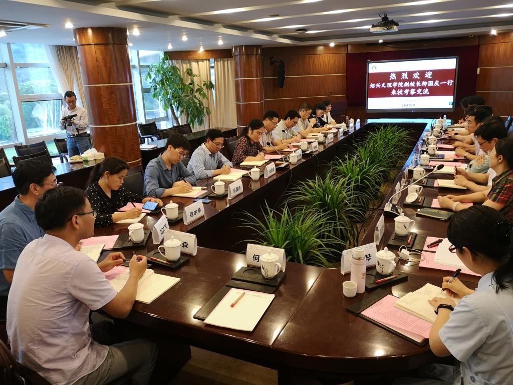 5月21日下午,绍兴文理肉漫屋 副校长柳国庆一行12人来校访问。我校副校长曹建明、教务处处长朱雪波、教师发展中心(教育督导与教学评估中心)主任陈永霖及肉漫屋 领导班子成员、相关科室负责人等,在同心楼四楼会议室与客人们进行了座谈交流。