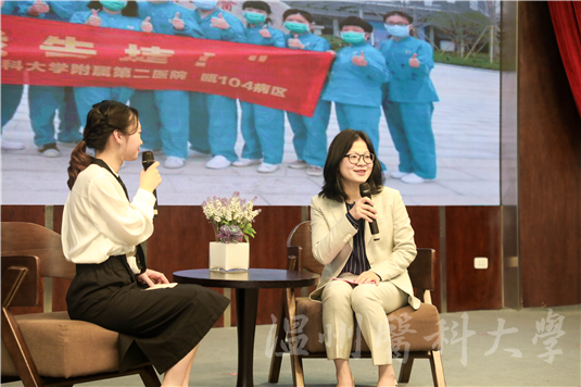 国家感染专家组成员,温州市人民医院院感科科长兼市院感管理质控中心常务副主任、主任护师吴红梅,浙江省首批援鄂医疗队普通护理组组长和医疗队护士长、附属第一医院护士长郑秀云,附属第二医院、育英儿童医院瓯江口院区104病区护士长刘一苇受邀来到现场接受访谈,讲述了她们在抗击疫情一线的感人故事。