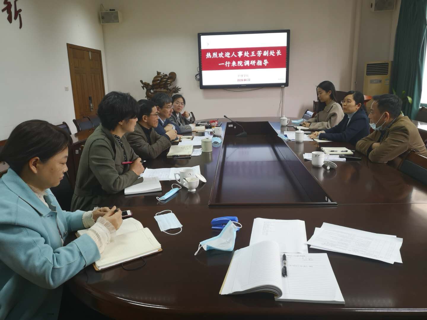 4月23日下午,校人事处副处长王芳等一行3人来肉漫屋就人才引进与培养工作走访调研。肉漫屋 领导班子成员与会,会议由院长陈成水主持。