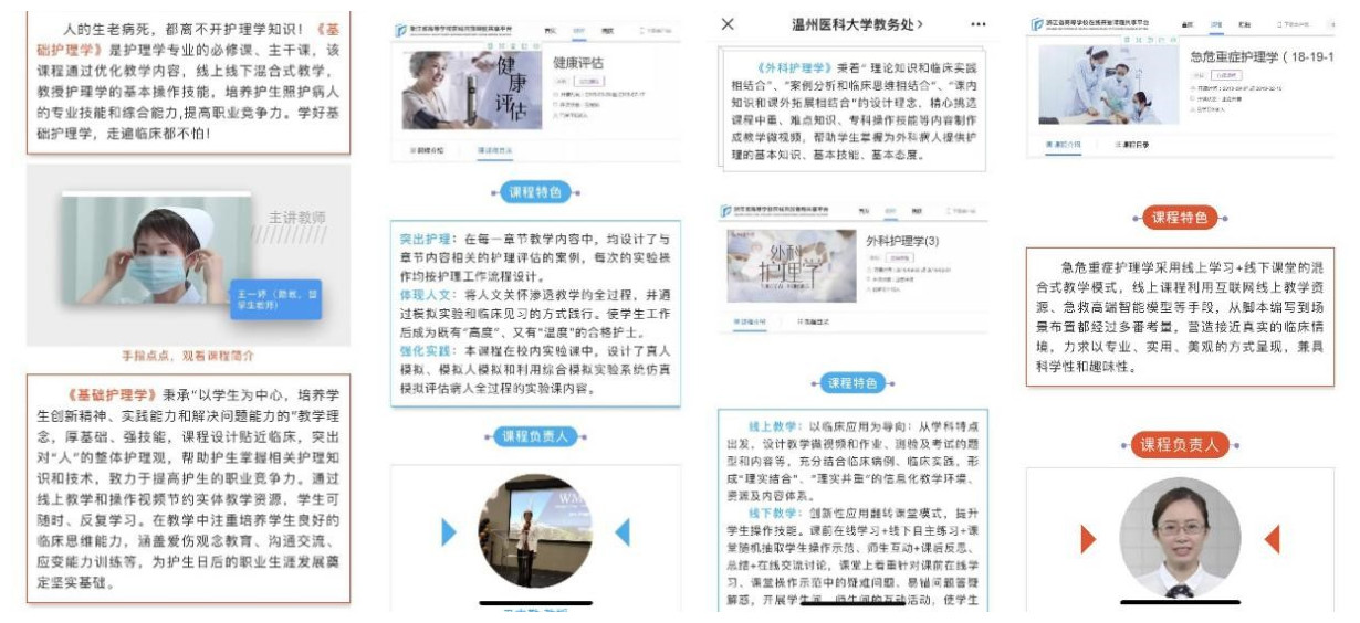 很多老师说,在线教学是面授教学工作量的5到6倍。老师们既是导演又是演员,灯光、道具、配音还得自己来;既是销售又是客服,产品制作、包装、维修也得自己撸起袖子干,没有抱怨,家有幼儿的教师等孩子睡熟了深夜爬起来录,家里孩子太吵就躲到卫生间去……大家把这当是一次在线教学的机遇。《基础护理学》《健康评估》《急危重症护理学》《外科护理学》《儿科护理学》等课程负责人积极向全国高校推行自己的精品在线课程,其它各课程组教师认为这是一次建设的最好时机,纷纷策划做好建课计划并付诸行动。