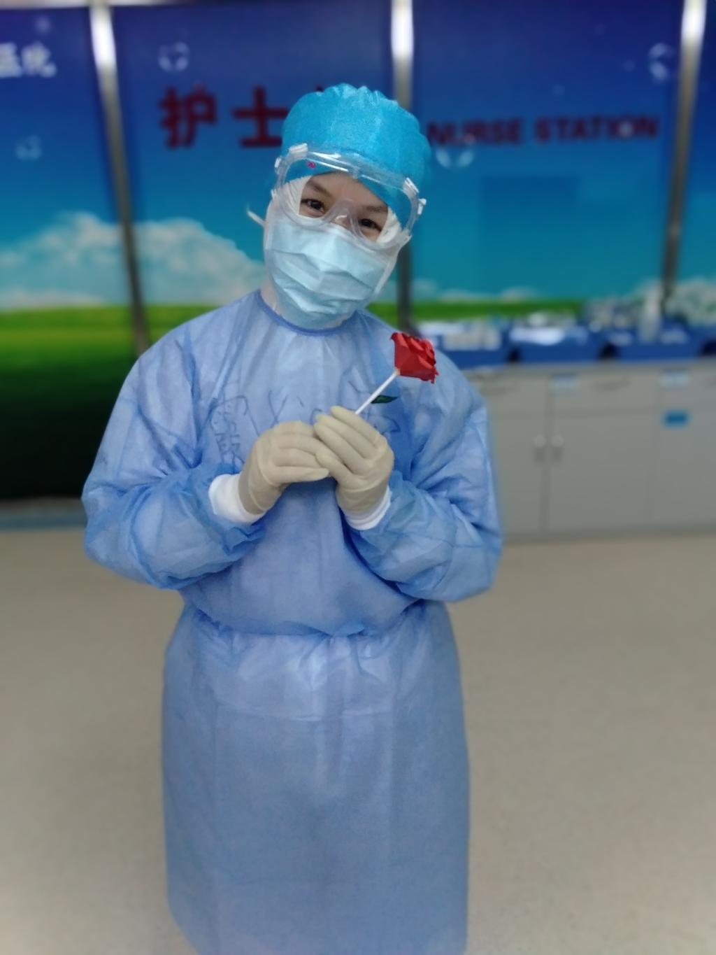 单霞霞,2007届护理学子,温州瑞安市中医院护士。“我原来都没有想过自己会有机会去支援武汉,因为第一批去的都是省市大型医院的医护人员,而我在县级医院工作,后来听到有这个机会的时候,我很惊讶。”她将8岁的孩子交给爱人和妈妈照顾,正月初四,从温州出发,坐大巴去省人民医院集合,在短暂的动员大会后,乘专机到武汉,支援武汉科技大学附属天佑医院,在普通隔离病房工作,工作内容除跟普通病房一样,还需做一些消毒工作,收拾病房垃圾、办公区垃圾等,并为一些重症病人提供生活护理,至今护理过两个病区80余病人,其中半数以上属于重症病人。