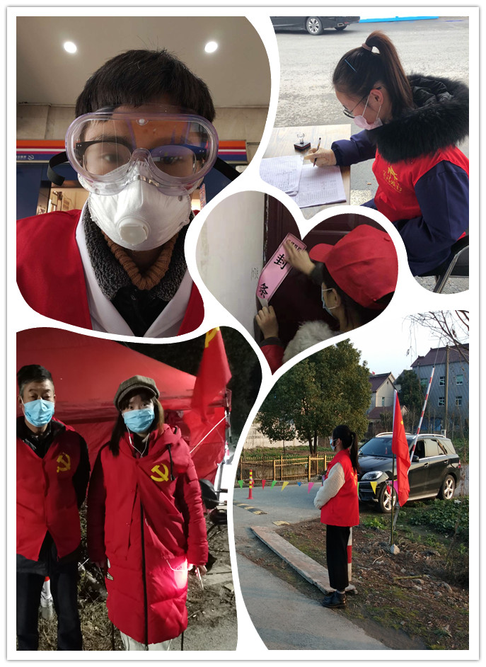 大二学子刘诗滢一家从2月1日起,在宁波市镇海区后施路为外来人员进行进出登记、测量体温;2018级护本10班的朱灵忆,从2月5日开始,就在03省道和她所在的村庄交叉路口执勤卡点给过往群众量体温、劝返非必要外出的群众、登记进出群众并发放临时通行证;2019级护本9班的戚艺在浙江萧山庆丰村对来往车辆进行检查登记、测量车主及乘客体温,给未戴口罩的村民发放口罩……