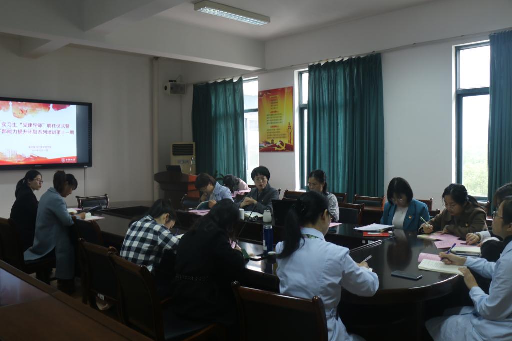 为加强实习生党员教育管理,日前,肉漫屋 试行实习生“党建导师”制,聘任了杨晔琴副院长、涂艳玲副书记等5人,担任由实习生党员任党支部书记的党支部“党建导师”。