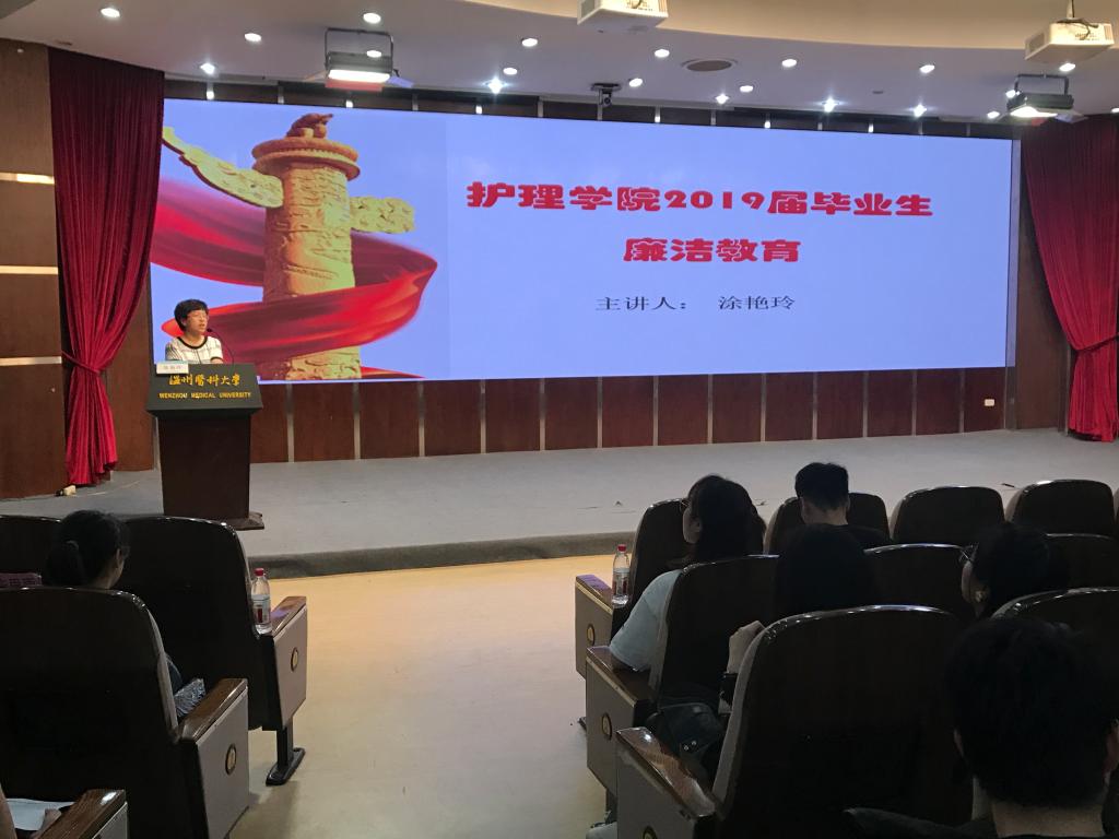 为弘扬廉洁文化,引导毕业生牢固树立爱岗敬业、廉洁自律的职业观念,5月27日下午1:30,肉漫屋 在旭光厅开展2019届毕业生离校前“最后一课”——廉洁教育课。肉漫屋 党委副书记、纪委书记涂艳玲为507名毕业生作专题教育。