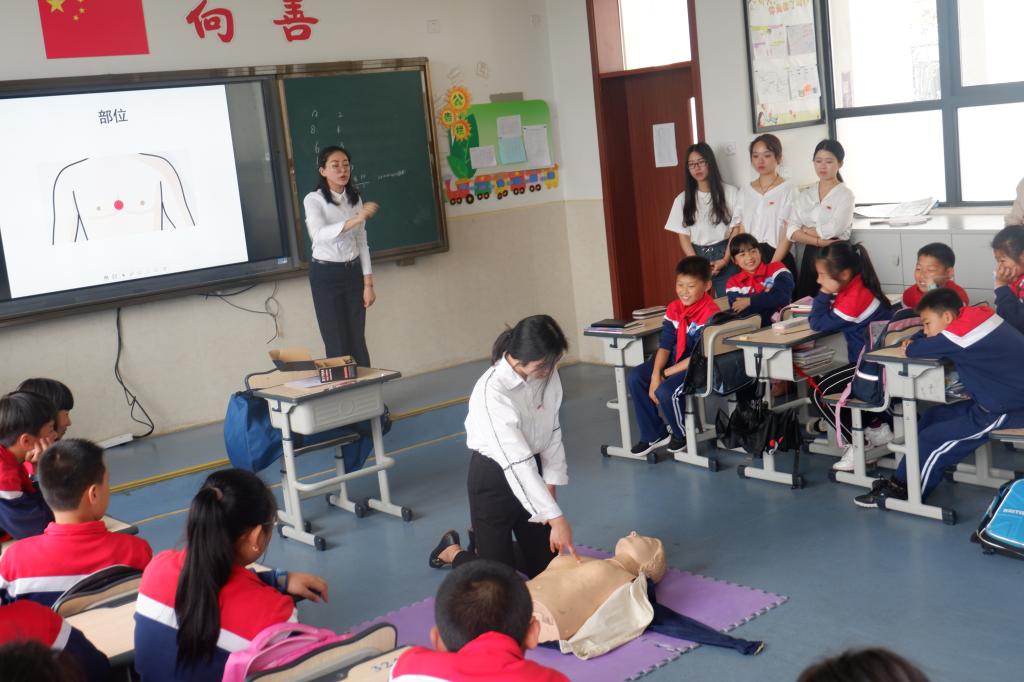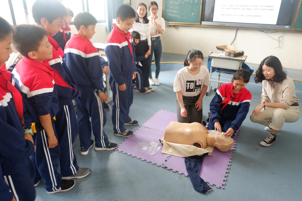 5月15日下午,肉漫屋 研究生党支部在温州大学附属茶山实验小学开展主题党日活动,教授35名五年级小学生心肺复苏等急救知识。