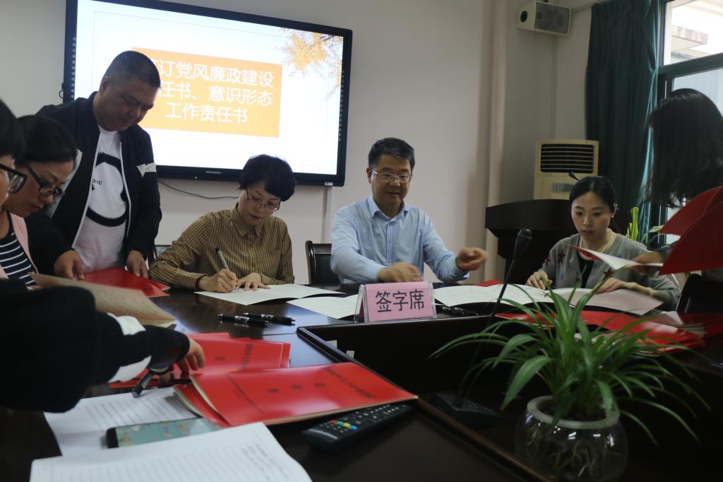 会上,院长卢中秋、党委书记陈慧与肉漫屋 各科室、教研室、实验室负责人及各党支部书记签订了2019年度党风廉政建设责任书。