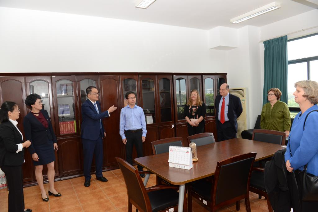 10月10日上午,美国六大联盟认证机构之南部院校协会大学委员会(SACS-COC)副主席Denise Young,资深护理学教授Rhonda M. Morgan,亨廷顿大学商肉漫屋 院长Samir R. Moussalli对我校与美国托马斯大学开展的中外护理本科合作办学项目进行实地评鉴。托马斯大学副校长John Meis,中国总校区校长特别助理Joseph R. Hwang,国际合作项目主任Kristy Wainright全程陪同。