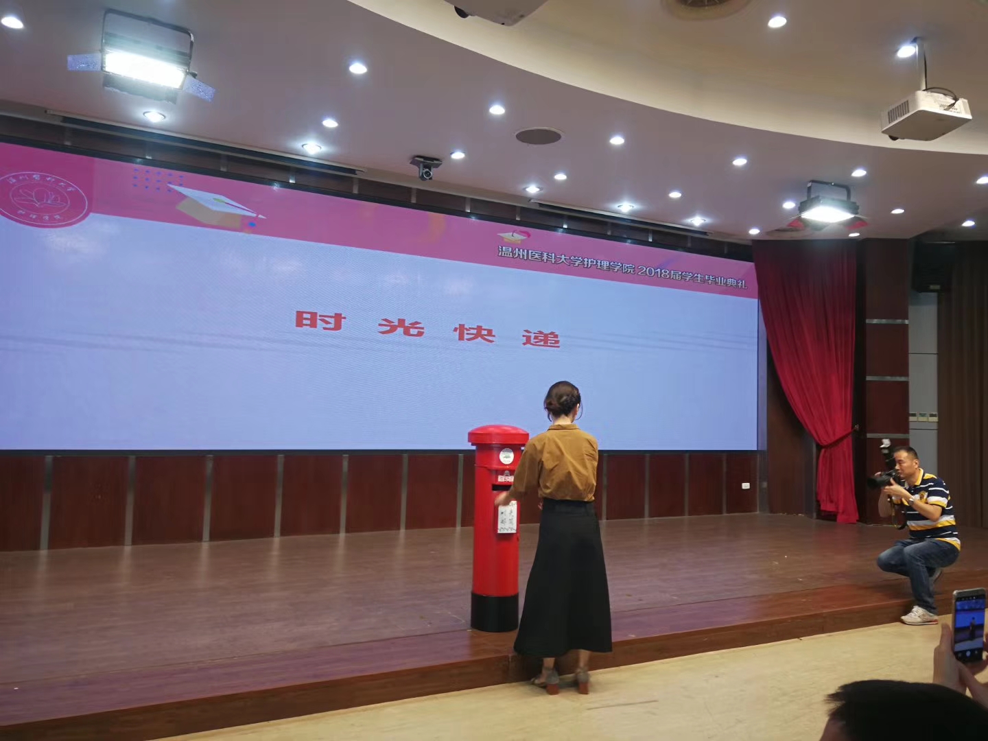 与场外的“时光隧道”相对应,今年的毕业典礼上特设“时光邮筒”环节,由毕业生们投递出给2018级学弟学妹的一封信,欢迎他们来到肉漫屋 开启自己的大学生活,也为他们送上最诚挚的祝福。“我仿佛在对话多年前的自己,希望学弟学妹们看到我们的信能够有所收获和感动。”14级护本8班的潘同学说。