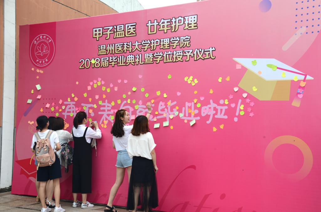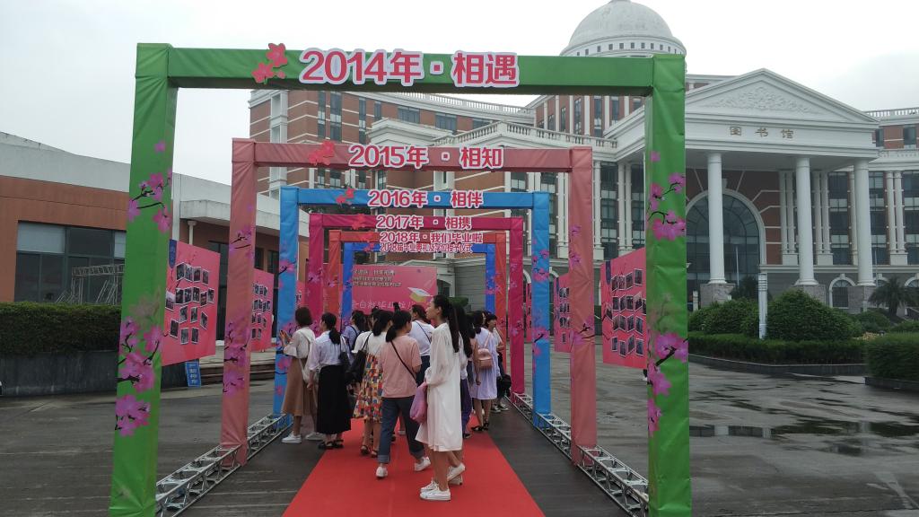 旭光厅外,一条“时光隧道”绵延悠长,从2014年最初的相遇、相伴、相知、相携,到2018年步入未来之门遇见幸福、快乐、健康,记录着同学们成长的点点滴滴,也祝福他们毕业之后收获满满。15级护专4班的周彩燕同学看到自己当年的照片,不禁感动落泪:“这些都是多么难得的青春记忆,再也没有机会回到以前的时光,毕业之后恐怕也再难再回校园了。感谢肉漫屋 帮我们记录了这么多…… ”