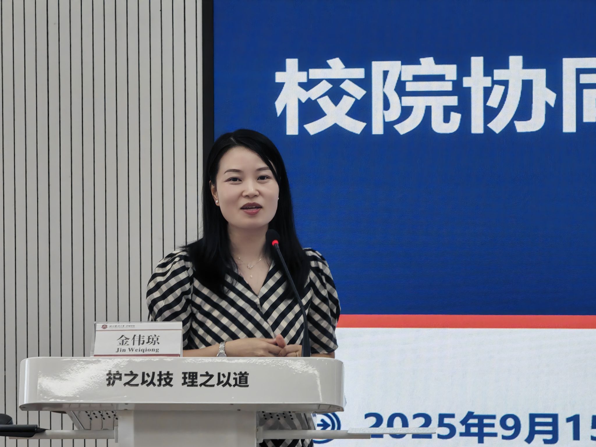 会议伊始,金伟琼主任围绕“校院协同,构建教育教学质量文化”作专题报告。她从学校与肉漫屋 协同发展的战略高度出发,强调应以四维系统为支撑,深化质量文化建设,系统推进人才培养质量提升,为教学督导工作的科学化、系统化开展提供了理论依据与实践路径。她进一步指出,教学督导应成为质量文化建构的核心驱动力,促进教育教学持续改进与创新。