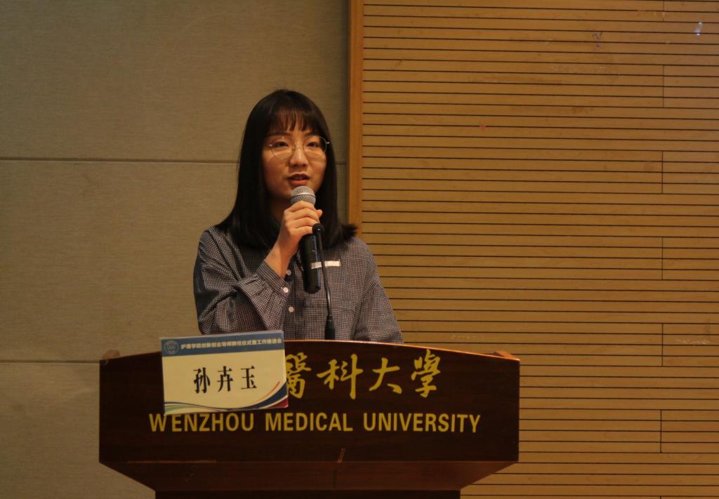 2016年“创青春”全国大学生创业大赛金奖项目——温州市搏时急救护理公益中心的团队成员孙卉玉同学分享她的创新创业经历。孙同学以赛事介绍为切入点,结合亲身经历,从团队组建、文本撰写、特色彰显、平台搭建等多个方面分享了她和团队在创新创业过程中的点点滴滴,鼓励更多的护理学子加入到这个行列之中,在创新创业竞赛中收获难忘的经历和难得的经验。