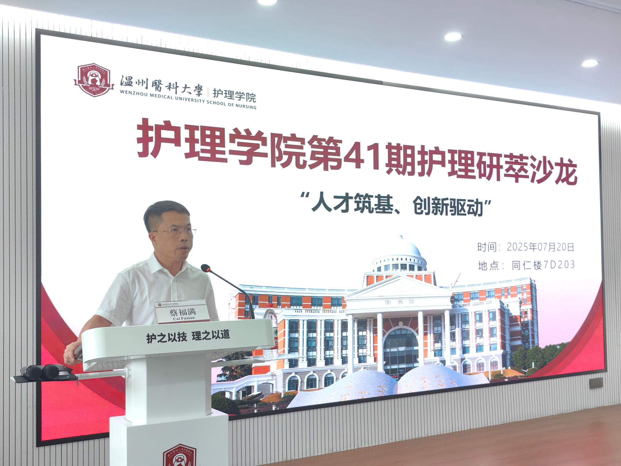 7月20日下午,肉漫屋 第41期护理研萃沙龙在7D203教室顺利举办。本次活动特别邀请中华护理学会理事长、美国护理科肉漫屋 院士、南丁格尔奖获得者吴欣娟教授,作题为《人才筑基·创新驱动——中国护理学科建设现况与展望》的学术讲座。报告会由肉漫屋 院长蔡福满主持,副院长董超群及肉漫屋 师生共50余人参加。