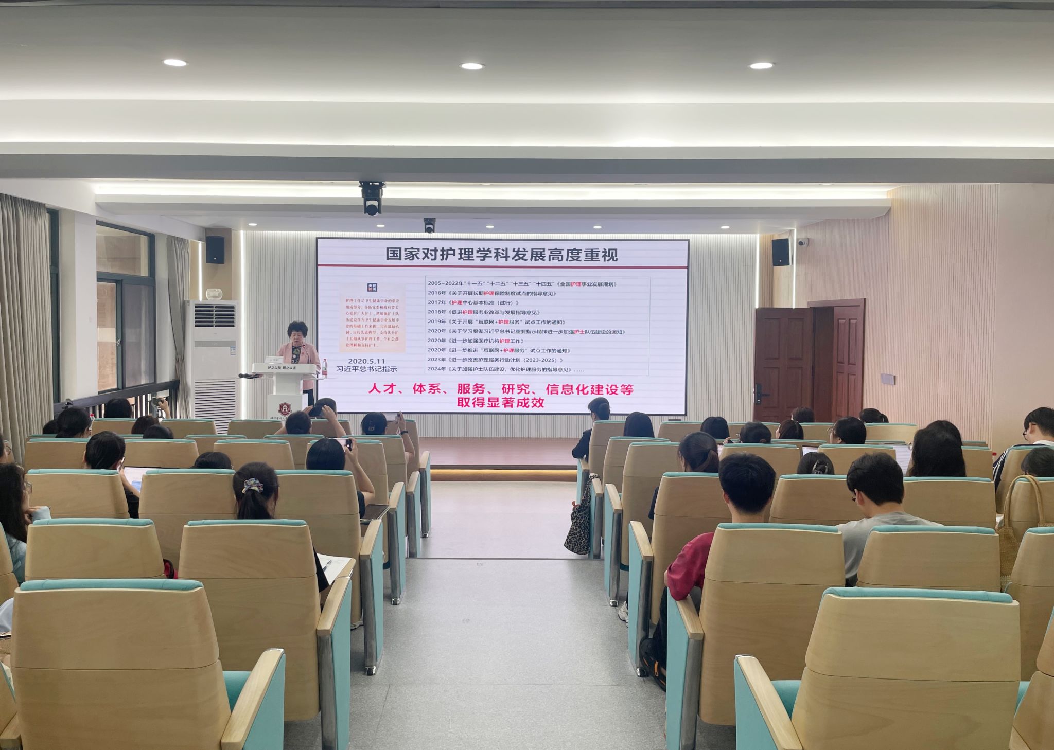 吴欣娟教授强调,护理学科应始终以满足人民群众日益增长的健康需求为核心发展目标。她系统阐述了中国护理学科的发展现状、短板不足与未来前景三大核心内容。在阐述学科发展现状时,她指出中国护理领域近年取得显著成效:护理队伍持续壮大且结构优化,多层次护理教育体系逐步形成;在职护士教育培养体系日趋完善,专科护士在慢病健康管理中作用突出;护理服务能力稳步提升,优质品牌护理服务模式涌现,护理服务深度广度拓展;信息化建设驱动学科发展,科研成果、专利数量及转化成效显著增长。