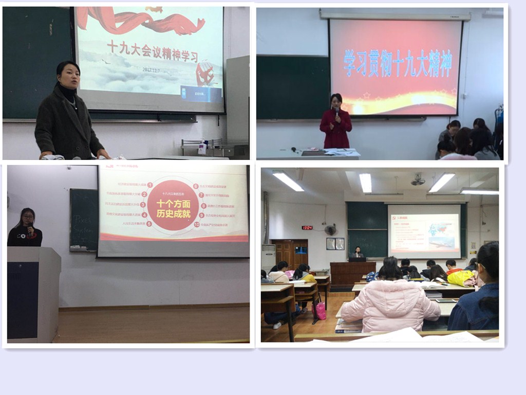 辅导员老师们在思想政治教育大会上带领同学们认真解读了十九大报告,让同学们认识到党的十九大是一次具有划时代意义的大会,在以习近平同志为核心的党中央领导下,我们豪迈地跨进了中国特色社会主义新时代,我国前所未有地走近世界舞台的中央,中华民族前所未有地接近伟大复兴的梦想,并正在逐步建成富强、民主、文明、和谐、美丽的社会主义现代化强国。