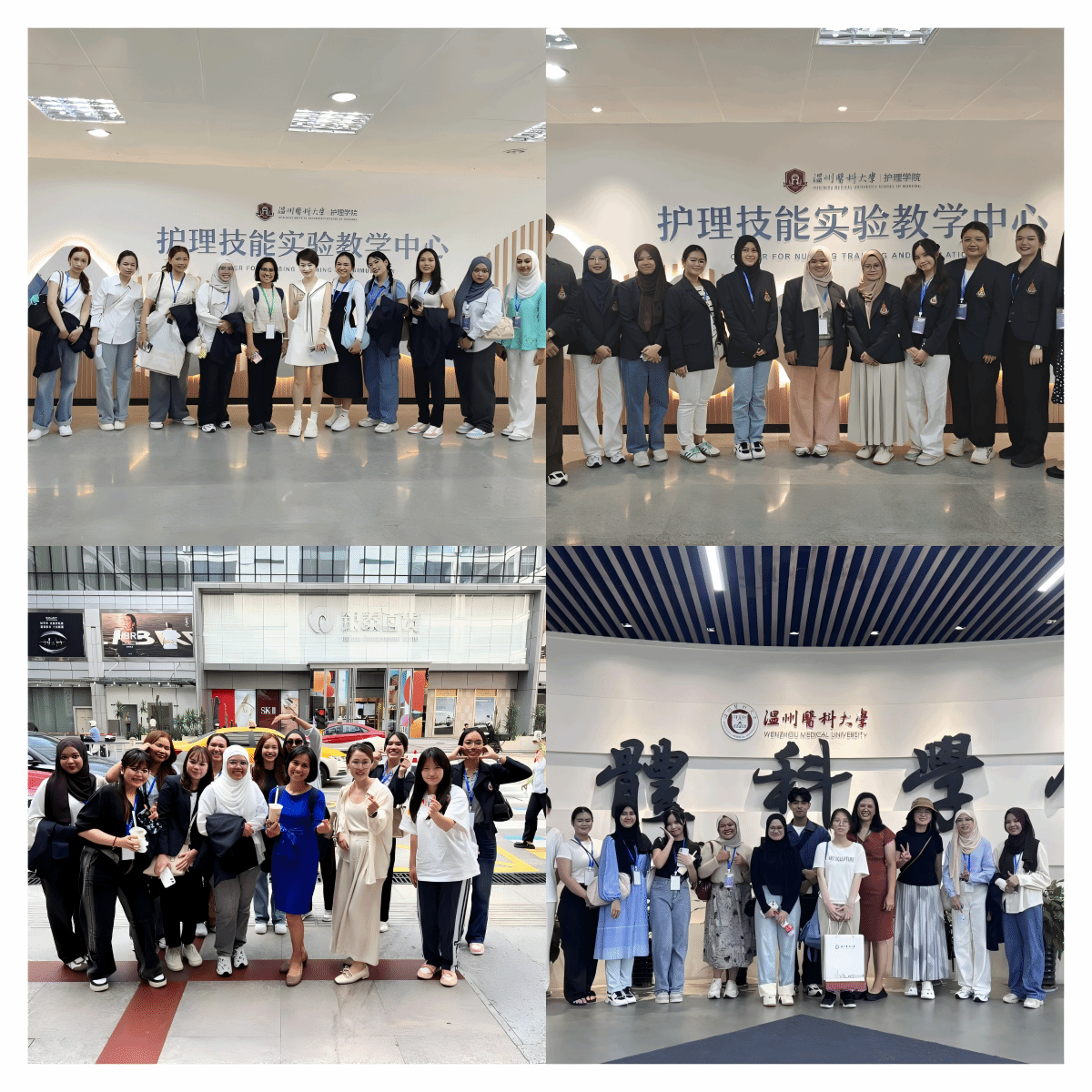 两批代表团分别由宋卡王子大学Kesorn Promlek教授与Pimpisa Saksorngmuang教授带队,包括20名护理专业学生组成。本次学术交流围绕“学术交流-临床见习-文化体验”三大主线展开活动。学术交流方面,代表团参观肉漫屋 校史馆、人体科学馆及护理实验室,并围绕实验教学创新与实验室师生展开专题研讨。临床实践方面,代表团赴肉漫屋 附属医院参访交流。附属第一医院梁世耀护士长,附属第二医院、育英儿童医院张春梅副院长,附属康宁医院吴春华主任,茶山街道卫生院贾建新院长等率护理团队热情接待代表团。各附属医院结合自身特色展示护理专业优势,并表达了与泰国宋卡王子大学深化合作,系统推进教育资源共享、学术成果共育与医疗技术互通的意愿。文化体验方面,在肉漫屋 教师和志愿者陪同下,代表团游览五马街历史文化街区,感受温州传统商业文化与南戏文化。