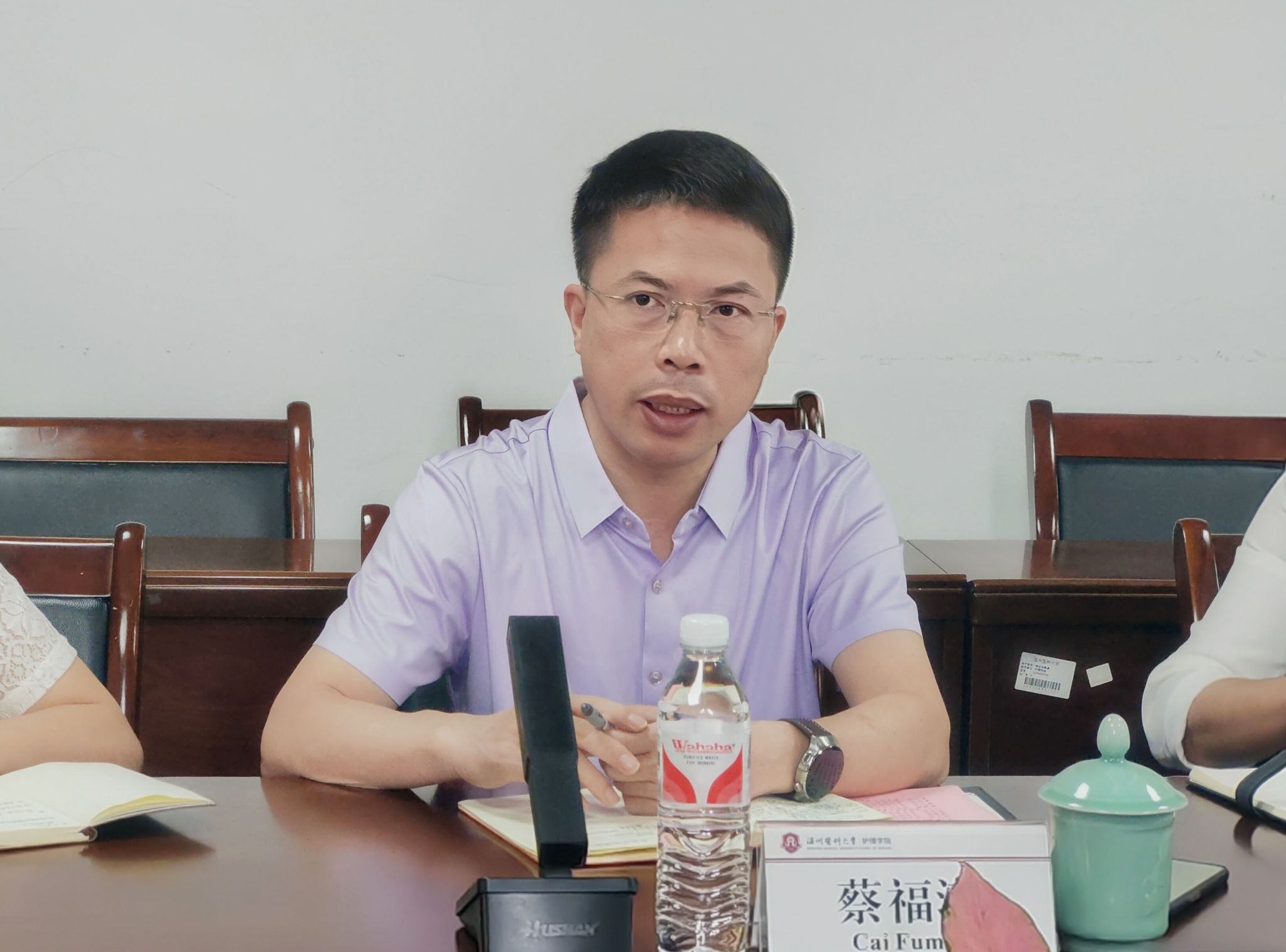 蔡福满院长对楼宏强院长一行的到访表示热烈欢迎,并围绕发展历程、本科教学、人才培养、护理研究、国际合作及社会服务等方面对肉漫屋 作详细介绍。他指出,肉漫屋 依托强大的附属医院资源,充分发挥院院融合的优势,聚焦特色研究方向,积极推进国家一流专业建设。同时,肉漫屋 大力引进和培育博士人才,构建跨学科研究团队,打造多元化的国际合作平台,促进护理科研领域的交叉创新,多措并举,全面提升学科建设水平。