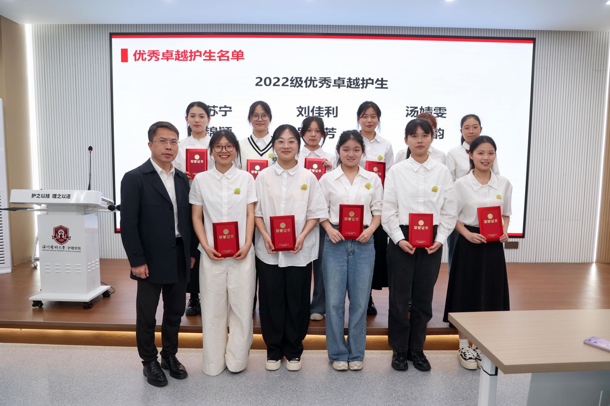 接着,进行了表彰仪式。蔡福满院长为2022级、2023级优秀卓越护生颁发荣誉证书。为2024级卓越护生导师颁发聘书。