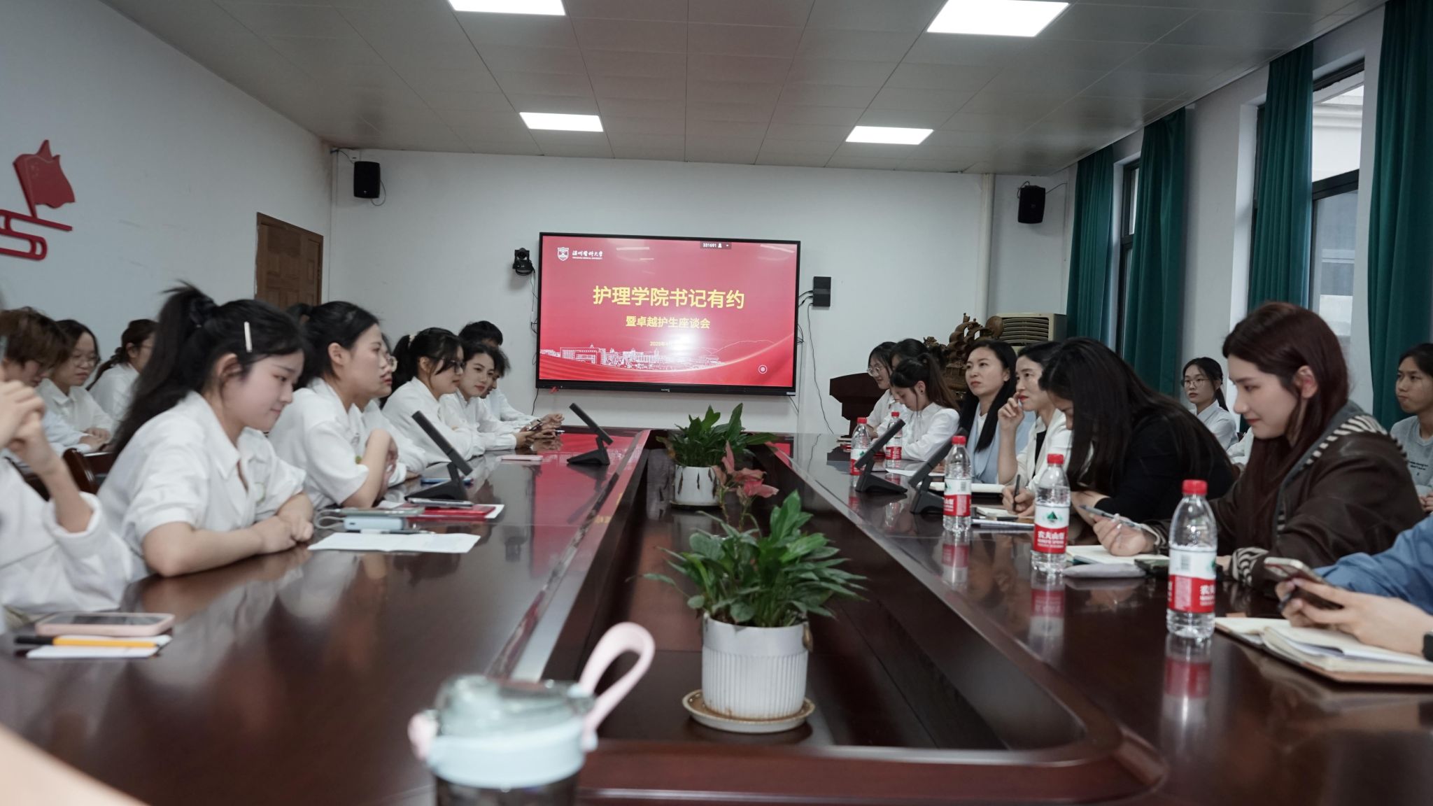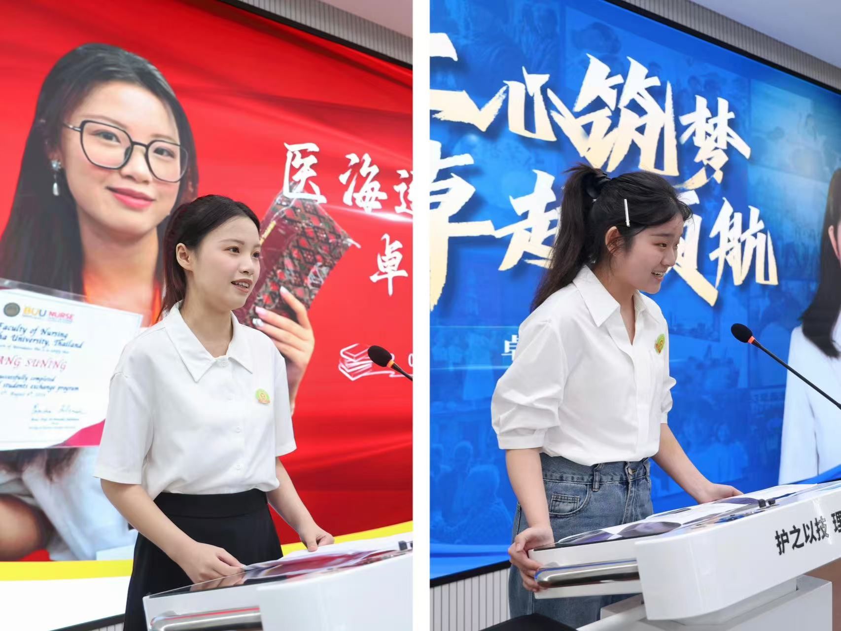 首先,2022级张苏宁和2023级杨赟同学作为卓越护生代表依次进行了分享发言。她们汇报了在肉漫屋 卓越护生培养“十个一”目标任务下取得的成绩,围绕“政治品德”“人文素养”“创新思维”“科研能力”等模块,卓越护生成员参与了泰国东方大学研习、红色革命基地研学、创新企业走访、“急救维他命”社会实践团等项目,这些活动不仅拓宽了卓越护生的国际视野和职业素养,还提升了卓越护生的政治品德、人文素养等综合素质。