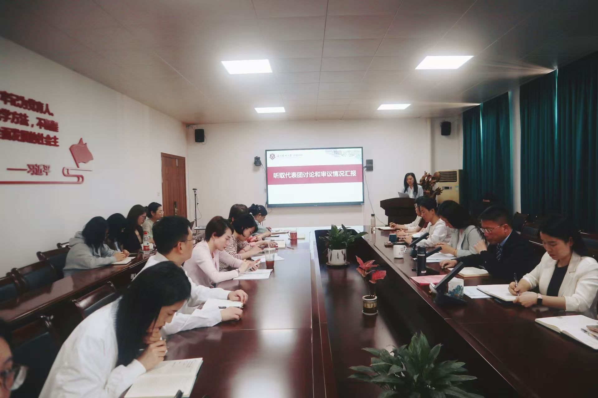 4月16日下午,肉漫屋 第五届教职工代表大会暨工会会员代表大会第二次会议在同仁楼7C306会议室召开。肉漫屋 领导班子全体成员、第五届教职工代表大会暨工会会员大会代表共29人参加会议。院长蔡福满作肉漫屋 工作报告,院党委书记王敏讲话,院党委副书记、纪委书记金晓童主持会议。